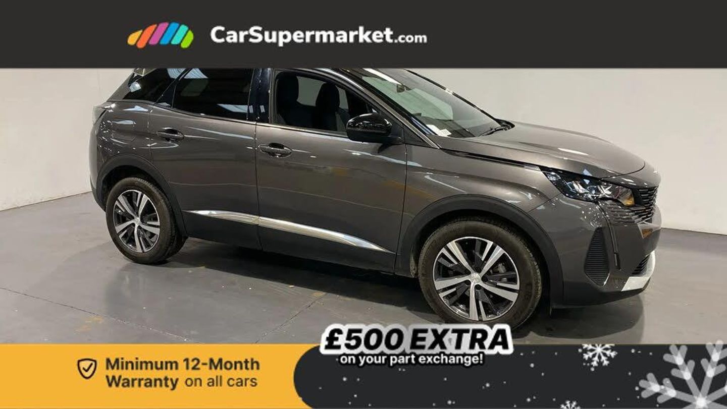 3D connected navigation with 10" HD touchscreen + voice recognition system,Bluetooth telephone facility,Drive modes select (Eco, normal and sport),Driving Time Warning (DAA1),Emergency services call system,Extended traffic sign recognition,Exterior temperature indicator with ice warning,Lane departure warning system,Mirror screen with Apple CarPlay and Android auto,Multi function trip computer,PEUGEOT i-Cockpit with compact sports steering wheel,PEUGEOT i-Cockpit with configurable 12.3" Head-up digital instrument panel,PEUGEOT SOS and assistance,Speed limit recognition and recommendation,Dynamic stability control and electronic anti-skid system,6 speakers radio with mp3 compatible,DAB Digital radio,USB socket in front centre console,2 X Rear number plate lights,Aluminium front door sills,Aluminium longitudinal roof bars,Automatic hazard light activation upon heavy brake application,Automatic triggered rear windscreen wiper in reverse gear,Black diamond roof,Black rubber side window trim,Black with chrome detailed front wing trim,Body colour door handles,Body colour rear roof spoiler with stainless steel edging trim,Body protectors (wheel arches + protection at bottom of doors) in black,Chrome frameless 'Classic' grille,Chrome rear bumper facia,Dark tinted rear side windows + tailgate window,Diamond Black door mirror shells,Eco LED headlights,Electric heated folding door mirrors,Front and rear door and sill protectors with polished stainless steel insert,Front bumper lower trim in Silver,Front windscreen wiper with magic wash cleaning system,Gloss black B and C pillar and aerodynamic deflector trim,Gloss black front bumper air scoops,Gloss black rear cluster connecting strip,Gloss black windscreen trim,Headlights left on audible warning,Heated rear windscreen with integrated antenna,LED daytime running lights in fang style,LED front indicator,LED side indicator lights integrated into door mirrors,LED third brake light,One touch electric front/rear windows with pinch protection,Rear LED Peugeot signature 'Claw Effect' lights,Rear side wing doors,Stainless steel door sill scuff plates,Stainless steel roof arches,12V Sockets in dashboard, rear cabin and load area,2 cupholders in front centre console,2 x Rear reading spotlights,2x Rear coat hooks,3x Isofix child seat fittings in the front passenger and outer rear seats,4 Grab handles retractable and damped,Aluminium pedals,Blue ambient lighting for connecting zone,Blue ambient lighting to headup instrument panel,Brumeo fabric trimmed door armrests,Centre front armrest with butterfly wing opening and illuminated storage compartment,Driver seat manual adjustment (longitudinal and back rest angle),Dual zone automatic climate control,e-Toggle compact gear selector,Electric power steering with reach and rake adjustable steering column,Flocked glovebox interior,Footwell illumination,Front interior light with 2 reading spotlights and rear interior light with timer,Front passenger seat manual adjustment (longitudinal and back rest angle),Front seat back map pockets,Gear shift indicator,Height adjustable front seats,Illuminated glove box, central storage area and load area,Illuminated vanity mirrors,Individual left and right controls in boot for seat folding,Leather steering wheel with detail stitch,LED interior lighting in storage spaces and load area,LED roof interior lighting,Rear armrest with ski flap and two cup holders,Rear bench seat with central armrest and ski hatch,Rear centre console ventilation system,Roof lining - Mistral black,Satin chrome dashboard trim,Satin chrome digital instrument panel,Satin chrome front door panel recess trim,Satin chrome interior door handles,Satin chrome scorpion's tail and toggle switch trim,Seatbelt not fastened audible and visual alert for front seats,Seatbelt unfastened on the move audible and visual alert for front and rear seats,Single front passenger seat,Two position boot floor,Visibility pack - 3008,3x Rear three-point retractable seatbelts with force limiters in the outer rear seats,ABS (Anti-lock Braking System) with EBD (Electronic Brakeforce Distribution) and EBA (Emergency Braking Assistance),Adaptive driver and front passenger airbags with passenger airbag deactivation function,Driver and front passenger side airbags,Electric child locking functionality on rear windows and doors,Electric parking brake,Front and rear curtain airbags,Front optimised safety headrests and 3 x rear retractable headrests with height adjustable,Front three point retractable seatbelts height adjustable with pre tensioners and force limiters,Front ventilated disc brakes and rear disc brakes,Hill start assist,Two tone horn,Automatic door locking when moving off,Electronic immobiliser,key operated exterior door lock from the left hand door,Perimetric and volumetric alarm with lift and tilt sensor,Peugeot Open and Go System,Carbon effect Dashboard, front and rear door panel finish