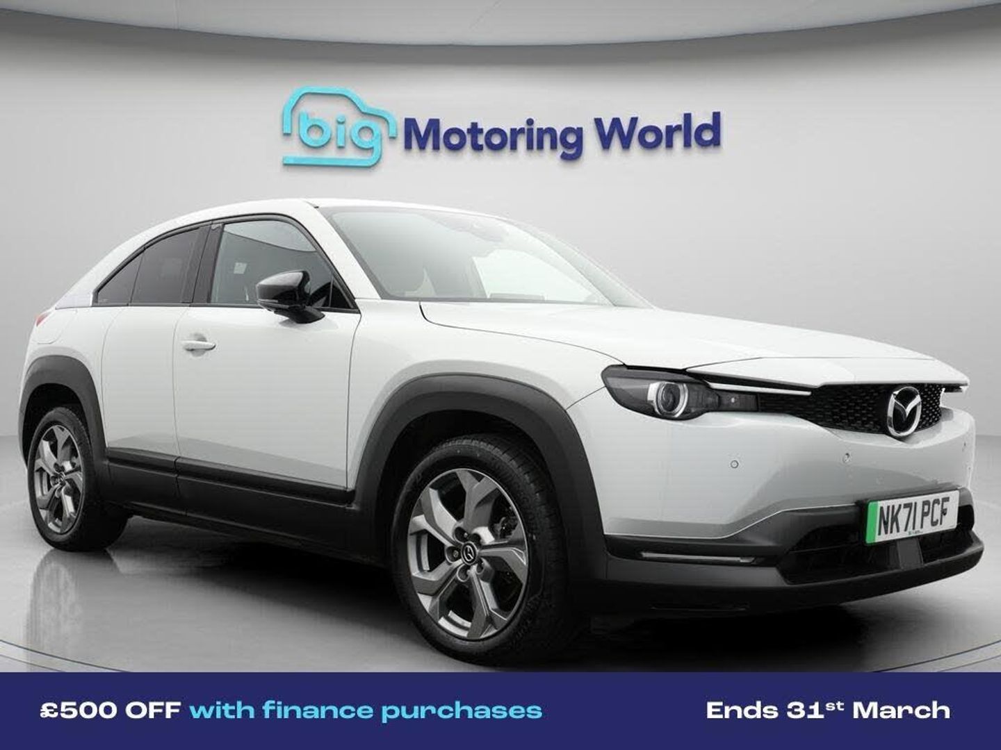 £500 towards your finance depo-Our Mazda MX-30 is finished in Silver. Specification includes a range of fantastic features including £500 towards your finance deposit, Head up Display, 18'' alloy wheels, Part Leather Seats, Adaptive Cruise Control, Satellite Navigation, Privacy Glass, Heated Seats, Rear View Camera, Heated Steering Wheel Specification information is supplied by CAPHPI and may vary to the actual car. This data does not form any part of a buying contact. Please check specification prior to purchase in-store. The MOT is valid until October 2026, visit bigmotoringworld.co.uk for more photos, a 360 tour, service history and a free HPI report.Were BIG on peace of mind and this Silver Mazda MX-30 has completed our comprehensive 200 point inspection and passed all checks. Its ready for you to drive away with immediate collection in-store. We include a 90-day warranty as standard plus an option to extend for up to 3 years.Reserve this car exclusively for you, safely and securely at bigmotoringworld.co.uk, with a fully refundable £99 deposit. Test drive before you buy, with no commitment, no hassle and a completely haggle free experience. Still searching and want to see thousands more cars? We are BIG on choice with over 8000 cars to choose from.Visit our award winning web site bigmotoringworld.co.uk.Were Big Motoring World and were BIG on what matters to you.