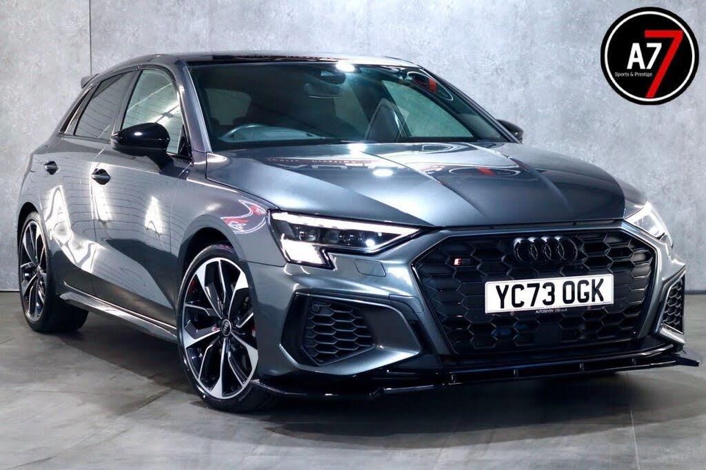 12v Socket and Storage Compartment in Front Centre Console, 19in Alloy Wheels - 5-Twin Spoke Edge - Audi Sport - Gloss Anthracite Black - Diamond Cut Finish, 19in Alloy Wheels - 5-Y-Arm Structure Design in Matt Grey - Diamond-Turned, 2 USB-C Ports with Charge and Data Functions, 3-Spoke Leather Multi-Function Steering Wheel with Gear-Shift Paddles, 360 Degree Camera, 4-Way Lumbar Support for Front Seats, Airbags - Driver and Front Passenger with Passenger Airbag Deactivation, Aluminium Interior Elements, Anti Theft Locking Wheel Bolts, Anti-Theft Alarm, Audi Beam, Audi Connect Navigation and Infotainment Services Plus (3 Year Subscription From New), Audi Drive Select, Audi Pre-Sense Front with Pedestrian and Cyclist Recognition, Audi Smartphone Interface, Audi Virtual Cockpit Plus, Auto Dimming and Frameless Rear View Mirror, Black Styling Pack, Bluetooth Interface, Brake Calipers Painted in Glossy Black, Cloth Headlining in Black, Collision Avoidance Assistant, DAB Digital Radio, Daytona Grey, Door Mirrors - Carbon Housing, Door Mirrors - Electrically Adjustable - Heated - Folding - Automatically Dimming with Memory Function and Integrated LED Indicators with Kerb View Function for Passenger Side, Dual-Branch Oval Twin Tailpipes in Chrome-Plated Finish, Dual-Zone Electronic Climate Control, Electric Windows - Front, Electrically Adjustable Front Seats with Memory Function for Drivers Side, Electronically Operated Child Locks, Emergency Call - E-Call, ESC - Electronic Stabilisation Control inc ABS - ASR and EDL, Extended Ambient Lighting Pack, Fine Nappa Leather - S Embossed - Front Sports Seats - Steel Grey, First Aid Kit and Warning Triangle and 2 Safety Vests, Front and Rear Centre Armrest in Artificial Leather, Front and Rear Floor Mats, Front Side Airbags with Head Airbags and Interaction Airbag, Front Sports Seats, Head-Up Display, Hill Hold Assist, I-Size and Top Tether Child Seat Mounting for the Outer Rear Seats, Illuminated Door Sill Trims with Aluminium Inserts and S Logo, Inlays - Carbon, Lane Change Assistant with Exit Warning System and Rear Cross Traffic Alert, Lane Departure Warning, LED Interior Light Package, Light and Rain Sensor, Luggage Compartment Floor Covering, MMI Navigation Plus with High Resolution 10.1in Touchscreen Colour Display, Pedals in Stainless Steel and Footrest in Black, Power Operated Tailgate, Privacy Glass, Progressive Steering, Remote Central Locking, S Suspension with Damping Control, S3 Design Body Styling, Seat Belt Monitoring, Split-Folding Rear Seat - Can be Split-Folded 40-60 or Folded Fully, Storage Package, Technology Pack Pro, Tool Kit, Tyre Pressure Loss Indicator, Tyre Repair Kit, Voice Control System with Natural Language Interaction, Windscreen with Acoustic Glazing, Windscreen with Heat-Insulating Glass
