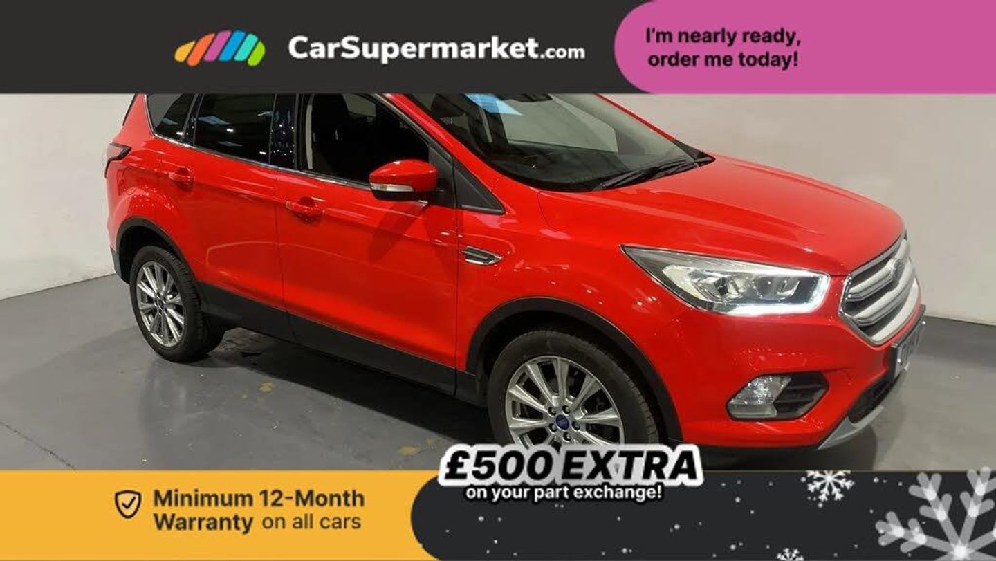 Apple car play/Android Auto,EPAS,Hands free telephone,Trip computer,2 USB ports,Auxiliary socket for external device,Remote audio controls on steering wheel,Auto dimming rear view mirror,Body colour bumpers,Body colour rear spoiler,Electrically operated and heated door mirrors with side indicators,Electrically operated front and rear windows with global closing,Front fog lights,Front scuff plate,Power folding door mirrors,Quickclear heated windscreen,Rain sensing wipers,Tailgate wash/wipe,Twin exhausts and rear diffuser,6 way manually adjustable passenger seat with lumbar support,60/40 split/folding rear back and cushion,Auxiliary power socket in luggage area,Centre console with stowage tray/bottle holder/CD stowage/front and rear 12V power point,Driver/passenger front seatback pockets,Dual electronic automatic temperature control,Folding rear centre armrest,Footwell courtesy lights front and rear,Front head restraints,Front overhead courtesy lights with theatre style dimming and delay,Front/rear reading lights,Isofix system on outer rear seats,Leather steering wheel and gear knob,Multi-colour ambient interior lighting,Part leather upholstery,Reach + rake adjustable steering column,Rear head restraints,Sports style front seats,Stowage unit in upper instrument panel,Tie down hooks,Tonneau cover,Variable intensity instrument illumination,Appearance pack - Kuga,3 point seatbelts on all 3 rear seats,ABS/EBD,Airbags - front driver/passenger, front & rear side, curtain, drivers knee,EBA,Electric traction assist system,Electronic Stability Programme,Front passenger airbag deactivation switch,Hill start assist,Intelligent Protection System (IPS),Tyre pressure monitoring system,Engine immobiliser,Keyless entry,Keyless start with 'Ford Power' starter button,Locking wheel nuts,MyKey system,Remote powered central double locking doors,Thatcham category 1 alarm,Mini steel spare wheel