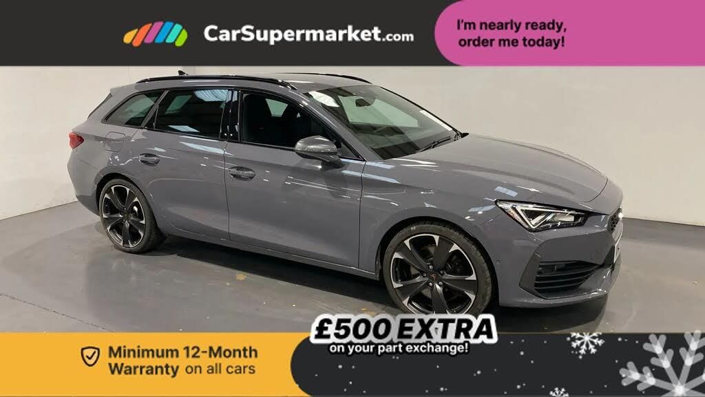 CUPRA drive profile selection with 4 modes (Comfort/Cupra/Sport/Individual), throttle response and gearshift mode,Digital cockpit,E-call,Four x USB Type C ports,Front assist with forward collision warning braking reaction to vehicles, pedestrians and cyclists,Full link smartphone integration with Mirror Link, wireless Apple CarPlay and wired Google Android Auto,Lane assist,Lockable tailgate,Park assist (inc front/rear parking sensors),Rear view camera,RPM, trip computer, outside temp gauge, instrument light brightness, low fuel warning light, lights on reminder, gearshift indicator,Service interval indicator,Start/stop system with regenerative braking,10 amp mode 2 charging cable,16 amp mode 3 charging cable,3.6 kw On-board charger,Standard suspension,XDS electronic differential lock and dynamic traction support,Auxiliary input socket,Auto dimming rear view mirror,Body colour door handles,Body coloured bumpers,Cupra sports bumpers,Dark tinted rear windows,Electric front/rear windows,Electrically adjustable, heated and folding door mirrors,Gloss black roof rails,LED front fog lamps with cornering function,LED headlights with dynamic turn signals, tail lights, rear fog lights with rear coast to coast lighting,Rain sensing wipers,Rear diffuser with twin exhaust pipe on each side with simulated exhausts,Rear side wing doors,Rear wash/wipe,Separate daytime running light with automatic headlight control and coming home feature,Third brake light,12v power supply in centre console,12v socket in loadspace,3 seat bench in 2nd row,5 headrests,60/40 split rear bench seat with armrest,Ambient lighting (glovebox, footwell, ambient lighting multicoloured),Black headlining,CUPRA Leather flat bottomed, heated, perforated steering and gearshift paddles,Cupra sports pedals,Driver/passenger manual seat height adjustment,Dust/pollen filter,Front and rear reading lights X 4,Front centre armrest,Front seats manual lumbar adjustment,Height/reach adjust steering wheel,Illuminated interior front door sills,Interior wraparound lighting,ISOFIX points in outer rear seats with top tether anchorage points,Luggage tie-down hooks,PVC/Cloth upholstery with copper stitching + Cupra embossed logo on headrest,Single front passenger seat,Sliding boot cover,Sports bucket seats,Storage pockets on rear of front seats,Sunvisors with illuminated mirror,Three zone climate control,Dynamic and comfort pack - Leon Cupra,Media system plus with navigation pack - Leon Cupra,3 point seatbelts on all rear seats,ABS,Brake control system - ESC and brake booster,Child proof door locks,Cupra black brake calipers,Driver and front passenger airbags with front passenger airbag de-activation, front side and curtain airbags,Electronic parking brake,Extended safety system - seat belt tensioner, window closure and hazard lights,Hill hold control,Rear disc brakes,Seat belt reminder for front and rear seats,Tiredness recognition system,Tyre pressure monitoring system,Anti theft alarm system with interior monitoring in cab, backup horn and towing protection,KESSY Advanced - Keyless start, keyless entry,Locking wheel bolts,Chrome and copper interior detailing,19" Machined black and silver alloy wheels with 91Y tyres,Breakdown kit,Tool kit