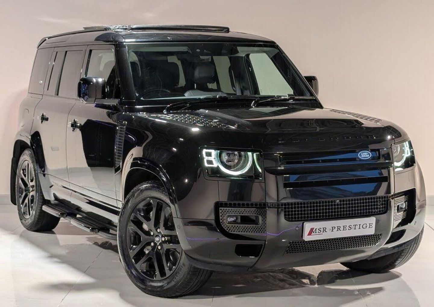 MSR Prestige are delighted to offer this stunning Land Rover Defender 3.0 P400 MHEV XS Edition SUV, a 5-door petrol automatic with 4WD and Euro 6 compliance, finished in Ultimate Black/Santorini Black and beautifully complemented by a black leather interior. This impressive example comes with full main dealer service history, reflecting the high standard of care and maintenance it has received. The exterior presents a bold and modern stance, enhanced by xenon headlights, daytime running lights, and fog lights, alongside a full gloss black styling theme including black badges, exterior trim, and alloy wheels. Side steps, privacy glass, a sliding panoramic roof, and twin exhausts further elevate both its appearance and practicality, while the six-seat configuration makes this Defender perfectly suited to family life and adventure alike. Inside, the cabin delivers a premium and highly capable environment, featuring electric and memory seats, an electric steering column, heated steering wheel, and four-zone climate control with heated seats, ensuring comfort for all occupants. The advanced digital driver display, multifunction steering wheel, voice command, cruise control, lane assist, and keyless start contribute to an intuitive and effortless driving experience. Technology and entertainment are equally impressive, with the renowned Meridian sound system, Apple CarPlay, Android Auto, satellite navigation, and a 360-degree camera system providing outstanding connectivity, sound quality, and visibility. Practical features such as lift suspension, electric handbrake, auto lights and wipers, along with thoughtful touches including an armrest and cup holders, complete this exceptionally well-specified Defender. At MSR Prestige, we take pride in offering high-quality vehicles that combine style, performance, and comfort. Our carefully selected cars are designed to deliver an exceptional driving experience, whether you're commuting, cruising, or embarking on a road trip. Competitive finance options are available, along with extended warranty packages for added peace of mind. Part exchange is welcome at trade prices, and nationwide delivery can be arranged. Please note that the number of keys for each vehicle will be confirmed with a sales representative. Vehicles may feature tasteful aesthetic upgrades such as upgraded alloys or exterior styling enhancements. As with all pre-owned vehicles, minor cosmetic imperfections such as light scratches or stone chips may be present. Vehicle information and specifications are provided to the best of our knowledge—please confirm details with our sales team. Visit MSR Prestige today to experience this exceptional Land Rover Defender XS Edition for yourself.