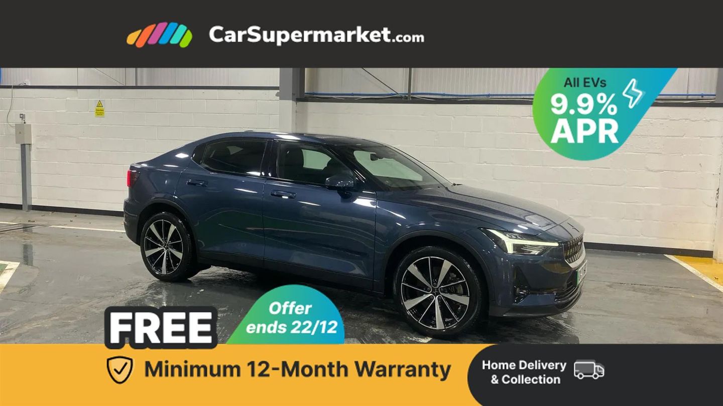 11.15 Central display touch screen,12.3" Active TFT crystal driver's information display,Automatic braking after collision,Bluetooth handsfree system,Cyclist Detection,Driver alert control,Forward collision warning,Front park assist,Inductive charging 15W for smart phone,Lane keeping aid,Oncoming Lane Mitigation,Progressive steering,Rear park assist,Speed limiter,Steering wheel buttons,Trip computer,11KW onboard charger,Dynamic chassis,Home charging cable, 7m,Type 2 for mode 3 Public charging cable 3P, 4.5m, 32A 22KW,2 USB-C connectors front,2 USB-C connectors rear,DAB Digital radio,Harman Kardon premium sound system,Infotainment powered by Android including Google Assistant, Google Maps, Google Play Store,Polestar Connect,Adaptive brake lights with high level LED brake lights,Approach lighting,Automatic dimming interior mirror,Automatic headlight levelling system,Automatic LED Headlights + Active high beam incorporating daytime running lights,Body coloured front grille surround,Dark tinted rear windows,Electric and heated frameless colour coordinated autofolding side mirrors,Fixed panoramic sunroof including lit Polestar symbol,Front and rear power windows,Front tread plates,Heated emblem in grille,Heated rear window,Heated wiper blades,LED running lights,Preparation for semi automatic towbar,Rain sensor with automatic windscreen wiper activation,12V power socket in luggage area,2 zone electronic climate control,Air quality control system,Armrest with cupholder and storage,Bag hooks,Charcoal headlining,Front and rear head restraints,Front footwell illumination,Front reading lights and theatre lighting,Front seats cushion extensions,Front storage compartment,Full Power Seats including 4-Way Power Lumbar Support,Glovebox bag hook,Heat pump,Heated front seats,Heated rear seats,Heated steering wheel,Height and reach adjustable steering column with speed sensitive steering,Hexagonal shaped gear shifter with illuminated polestar symbol,High voltage coolant/heater,Humidity sensor,Illuminated vanity mirrors + ticket holder,Interior high level illumination,ISOFIX attachment front passenger seat,ISOFIX attachment on rear outer seats,Mechanical cushion extension and backrest storage nets,Memory on driver seat,One pedal drive with autohold,Rear clothes hook,Rear floor lid in lid with bag holder and 12V,Rear reading and courtesy lights,Rear seat 40/60 split,WeaveTech steering wheel,3x3 point rear seatbelts,Alcolock preparation,Collision avoidance and mitigation by braking and steering,Connected safety with slippery road alert and hazard light alert,Curtain airbags,Driver and front passenger airbags,Electrical child lock for rear doors and rear windows,Electronic stability control,First aid kit,Front and outer rear seatbelt reminder and pretensioners,Hill start assist,Indirect tyre pressure monitoring system (ITPMS),Inner side airbags,Passenger airbag cut-off switch,Pedestrian detection,Polestar digital key,Power parking brake with auto hold function,Road sign information display,Run off road mitigation and protection,SIPS side airbags,Stability and Traction Control with Spin control, Engine Drag Control and Corner Traction Control,Vehicle deceleration control with Anti-lock Brake System, Electronic Brake Distribution and Emergency Brake Assist,WHIPS whiplash protection system - front,Alarm,Key fob and key tag,Key integrated remote control central locking,Keyless entry with handsfree boot lid opening,Keyless Start,Lockable wheel bolts,Tyre sealant kit and compressor