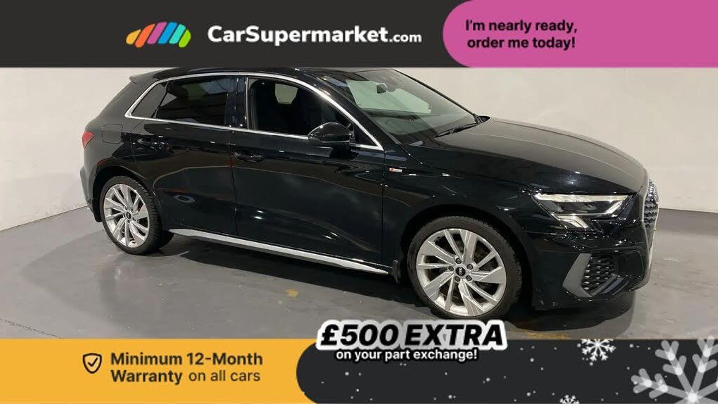 Audi connect emergency call and service,Audi drive select (Auto, Comfort, Dynamic, Efficiency and Individual),Audi smartphone interface,Audi Virtual Cockpit - 10.25" digital and colour instrument cluster,Automatic start/stop system with recuperation,Bluetooth interface,Collision avoidance assistant,Electromechanical power speed sensitive steering,Lane departure warning system,MMI Navigation Plus with high resolution 10.1" colour touch screen display,Service indicator,Trip computer,Voice control system with natural language interaction,3 pin 10 amp domestic charging cable,Type 2 mode 3 32 amp charging cable,Type 2 socket for AC charging,2xUSB-C connection with data and charging functions,6 passive loudspeakers,DAB Digital radio,Acoustic glass windscreen,Aluminium window trim,Auto dimming frameless rear view mirror,Electrically adjustable/heated/folding/auto dimming door mirrors with integrated LED indications + kerb view function for passenger side,Front electric windows,Illuminated aluminium inserts front door sills with S logo,LED daytime running lights,LED headlights with LED rear lights and dynamic rear indicators,Light and rain sensors,Privacy glass - dark tinted rear window, rear door and side windows,Rear electric windows,Rear side air outlets in grained matt black,Rear wiper,S line bumpers,S roof spoiler,12V socket and storage compartment in front centre console,40/20/40 split folding rear seat bench with cupholder,Black cloth headlining,Dual zone electronic climate control,Front and rear centre armrest in leather,Front and rear headrests,Height and reach adjustable steering wheel,Interior lighting - glove compartment light and right hand side,Luggage compartment floor covering,Manual boot compartment lid,Manually adjustable front seats,Seat side bolsters,Stainless steel pedals and front footrest,Twin leather upholstery with front sports seats S embossed logo,Aluminium interior elements pack - A3 Sportback,S line styling pack - A3 Sportback,3x3 point rear seat belts,Driver and front passenger airbag with passenger airbag deactivation,Electronic Stabilisation Control (ESC) including ABS, ASR and EDL,First aid kit with warning triangle and 2 safety vests,Front side airbags with head airbags and interaction airbag,Hill hold assist,Pre-sense front with pedestrian and cyclist detection,Seatbelt monitoring,Tyre pressure loss indicator,Anti theft alarm,Anti-theft wheel bolts,Electronically operated child lock,Immobiliser,Remote control central locking,Accent surfaces in the dashboard and centre console in platinum grey silk effect paint finish,Dark spectrum aluminium inlays,Tool kit,Tyre repair kit