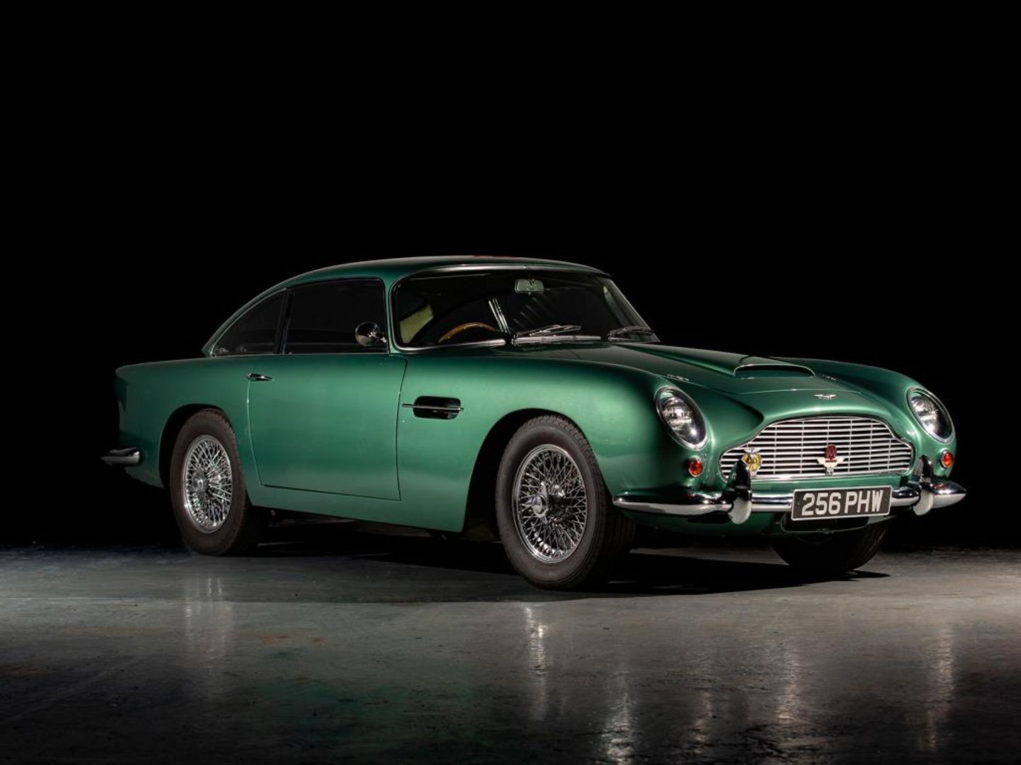 Most recently, Aston Martin Works Service and Trinity Engineering in 2017-18 undertook a sympathetic body restoration with the DB4 again being refinished in Aston Martin Almond Green. During this process, close attention was paid to reshaping the front wings to factory correct standards, and the car received a new windshield, side and rear windows, and the window frames were rechromed. Since the completion of this work, the car was largely kept in static storage, with regular exercise off public roads to make sure it remained in working order. The last service was carried out in 2021 at Aston Engineering in Derby.