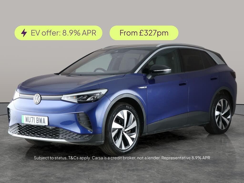 Experience the future of driving with this Volkswagen ID.4a standout electric SUV finished in stunning blue. Enjoy premium comfort with heated Alcantara seats and a host of tech features, including adaptive cruise control, an intuitive sat nav, and a reversing camera for hassle-free manoeuvring. Stay seamlessly connected with Apple CarPlay, Bluetooth audio streaming, and Car-Net App-Connect. LED headlights and the Assistance Pack enhance both style and safety, making every journey a pleasure. 2 services recorded, last serviced on 10/09/2025 at 22,537 miles. MOT to 12/09/2026. Visit our website for service history, online valuation, full vehicle specification plus multiple images. This vehicle is VAT qualifying. Any feature/option specified here is from 3rd party data. We cannot guarantee the accuracy of any specification supplied by a 3rd party. We recommend that you physically check the specification of the vehicle on site prior to purchase. This information does not form part of the buying contract. Terms & Conditions apply. We have over 2,000 cars available from our 10 national branches, check our website to see all our stock. Our Trustpilot rating is 4.4/5 with over 9,000 reviews.