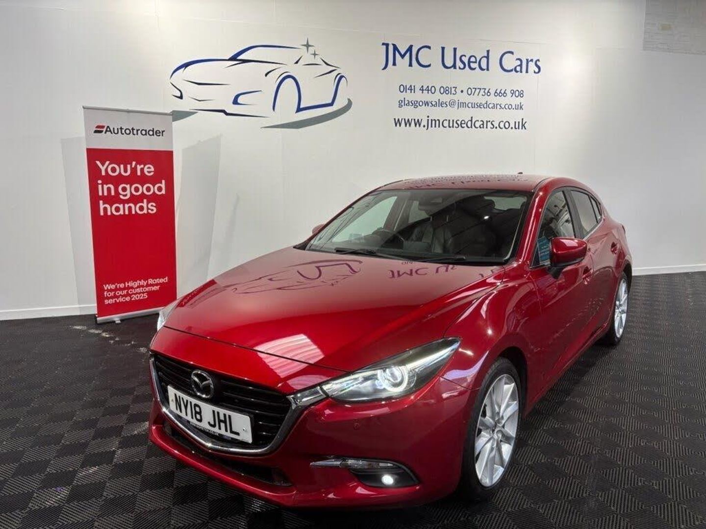 The Mazda Mazda3 2.0 SKYACTIV-G Sport Nav Hatchback 5dr Petrol Manual Euro 6 is a stylish and engaging hatchback that offers a smooth yet responsive driving experience. Its 2.0-litre SKYACTIV-G engine delivers a great balance of performance and efficiency, while the Sport Nav trim adds premium features such as advanced navigation, high-quality interior finishes and enhanced safety technology. With sharp handling, modern design and Euro 6 compliance, the Mazda3 Sport Nav is an excellent choice for drivers who want comfort, reliability and enjoyment in one well-rounded package. Award-Winning Family Business | Premium Customer Service & Aftercare Located just off Junction 24 of the M8 in Glasgow, we offer an impressive range of quality used cars, all displayed in our indoor showroom. Each vehicle is meticulously prepared to meet our high standards, ensuring you're driving away with complete confidence. We welcome part exchanges and offer tailored finance and warranty packages to suit every budget. Need help choosing the right car? Our team is here to provide expert advice and support. Can't make it in person? No problem! We offer live video walkarounds of our cars upon request, and you can complete all finance agreements securely online. For more details or to arrange a viewing, contact Martin today. JMC USED CARS WWW.JMCUSEDCARS.CO.UK glasgowsales@jmcusedcars.co.uk