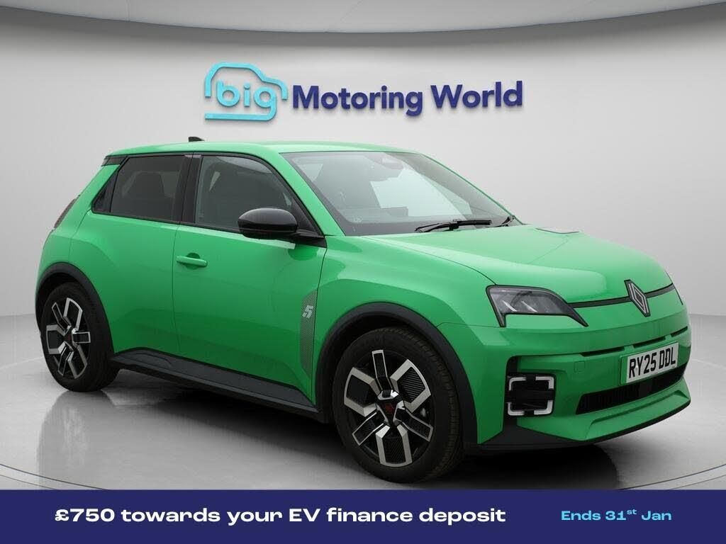 18'' alloy wheels,Apple CarPlay-Our Renault 5 E-Tech electric is finished in Green. Specification includes a range of fantastic features including 18'' alloy wheels, Apple CarPlay, Adaptive Cruise Control, Lane Assist, Android Auto, Privacy Glass, Rear View Camera, Internet, Bluetooth, Parking Sensors Specification information is supplied by CAPHPI and may vary to the actual car. This data does not form any part of a buying contact. Please check specification prior to purchase in-store. The MOT is valid until August 2028, visit bigmotoringworld.co.uk for more photos, a 360 tour, service history and a free HPI report.Were BIG on peace of mind and this Green Renault 5 E-Tech electric has completed our comprehensive 200 point inspection and passed all checks. Its ready for you to drive away with immediate collection in-store. We include a 90-day warranty as standard plus an option to extend for up to 3 years.Reserve this car exclusively for you, safely and securely at bigmotoringworld.co.uk, with a fully refundable £99 deposit. Test drive before you buy, with no commitment, no hassle and a completely haggle free experience. Still searching and want to see thousands more cars? We are BIG on choice with over 8000 cars to choose from.Visit our award winning web site bigmotoringworld.co.uk.Were Big Motoring World and were BIG on what matters to you.