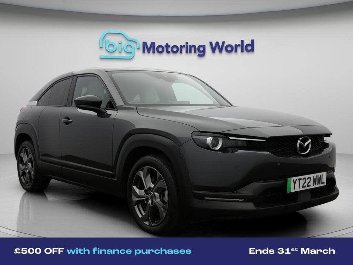 £500 towards your finance depo-Our Mazda MX-30 is finished in Grey. Specification includes a range of fantastic features including £500 towards your finance deposit, Head up Display, 18'' alloy wheels, Part Leather Seats, Adaptive Cruise Control, Satellite Navigation, Privacy Glass, Heated Seats, Rear View Camera, Bluetooth Specification information is supplied by CAPHPI and may vary to the actual car. This data does not form any part of a buying contact. Please check specification prior to purchase in-store. The MOT is valid until December 2026, visit bigmotoringworld.co.uk for more photos, a 360 tour, service history and a free HPI report.Were BIG on peace of mind and this Grey Mazda MX-30 has completed our comprehensive 200 point inspection and passed all checks. Its ready for you to drive away with immediate collection in-store. We include a 90-day warranty as standard plus an option to extend for up to 3 years.Reserve this car exclusively for you, safely and securely at bigmotoringworld.co.uk, with a fully refundable £99 deposit. Test drive before you buy, with no commitment, no hassle and a completely haggle free experience. Still searching and want to see thousands more cars? We are BIG on choice with over 8000 cars to choose from.Visit our award winning web site bigmotoringworld.co.uk.Were Big Motoring World and were BIG on what matters to you.