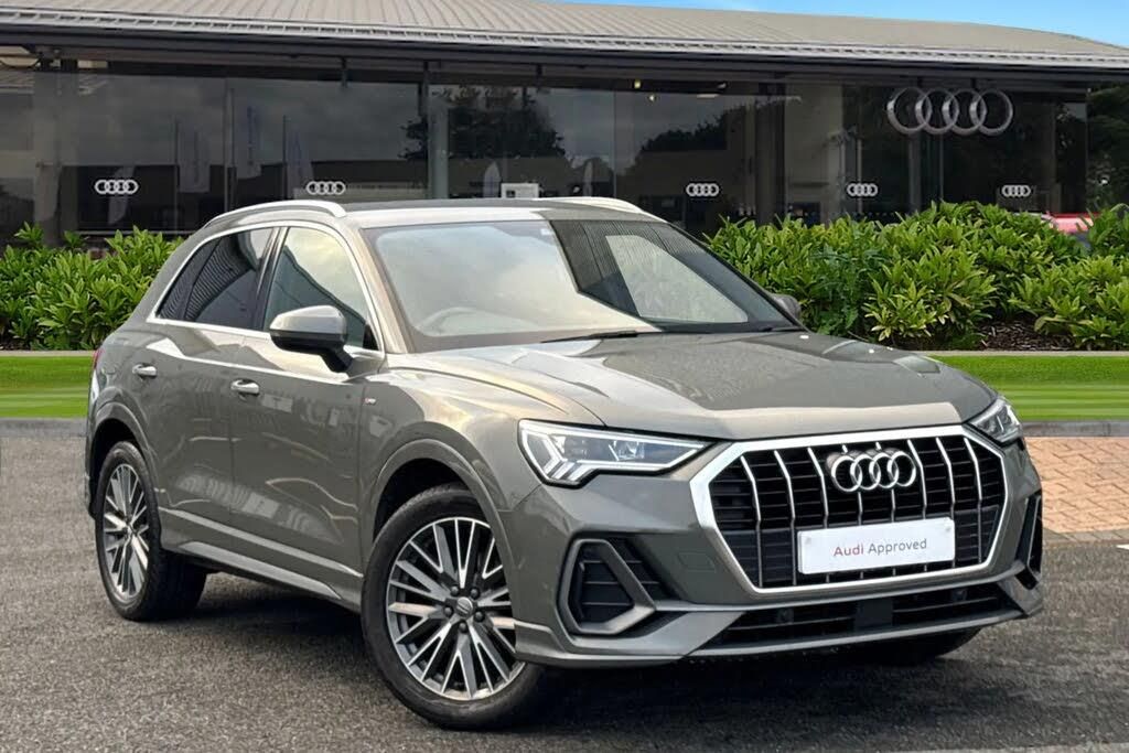 Carlisle Audi is pleased to introduce this Audi Q3 S line, finished in the striking Chronos Grey. This Q3 is fitted with a 1.5 litre petrol engine, allowing you to push an impressive 150PS. Able to reach 0-62mph in a brisk 9.4 seconds this Q3 is perfect for those looking to travel distances both long and short. This Q3 sits on a set of upgraded set of 19" alloy wheels in the 20 V spoke design, allowing you to stand out from the crowd. This Q3 comes equipped with LED Headlights, designed to perfectly illuminate the road no matter the driving conditions. Alongside this is privacy glass on the rear windows, not only adding to the sleek exterior of this SUV, but also enhancing the privacy of your passengers. This Q3 comes with the Comfort & Sound Pack which includes Parking system plus as well as a Rear-view camera, allowing you to easily park and manoeuvre your vehicle no matter how tight the space. This vehicle comes with the Bang & Olufsen 3D Sound System, allowing you to listen to all your favourite music in stunning quality. The Heated front seats ensure you can stay cozy no matter the weather outside. In front of he driver is the multifunction steering wheel that allows you to easily control your music, cruise control and Audi Virtual Cockpit. Here you can see information about your car, phone connectivity and navigation system. This Q3 also comes with the Audi Smartphone Interface, allowing you to connect your phone using either Android AUto or Apple carplay to your vehicle.