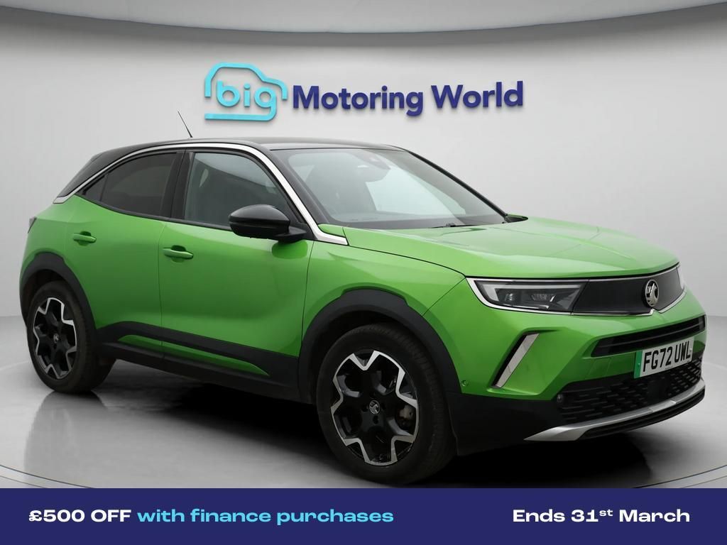 £500 towards your finance depo-Our Vauxhall Mokka Electric comes with optional extras worth £1,300. Specification includes a range of fantastic features including £500 towards your finance deposit, 18'' alloy wheels, Part Leather Seats, Leather Seats, Apple CarPlay, Adaptive Cruise Control, Android Auto, Satellite Navigation, Privacy Glass, Heated Seats Specification information is supplied by CAPHPI and may vary to the actual car. This data does not form any part of a buying contact. Please check specification prior to purchase in-store. The MOT is valid until October 2026, visit bigmotoringworld.co.uk for more photos, a 360 tour, service history and a free HPI report.Were BIG on peace of mind and this Green Vauxhall Mokka Electric has completed our comprehensive 200 point inspection and passed all checks. Its ready for you to drive away with immediate collection in-store. We include a 90-day warranty as standard plus an option to extend for up to 3 years.Reserve this car exclusively for you, safely and securely at bigmotoringworld.co.uk, with a fully refundable £99 deposit. Test drive before you buy, with no commitment, no hassle and a completely haggle free experience. Still searching and want to see thousands more cars? We are BIG on choice with over 8000 cars to choose from.Visit our award winning web site bigmotoringworld.co.uk.Were Big Motoring World and were BIG on what matters to you.