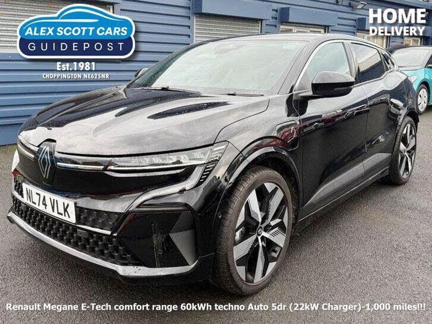 Renault Warranty til September 2027 and remaiming battery warranty til September 2032!!!!!!!!!!!!!!!!!!!!!!!!!!!!!!!!!This 2024 Renault Megane E-Tech Comfort Range Techno is a remarkable example, boasting exceptionally low mileage of just 1000 miles for its age and having had only one owner. This electric hatchback combines advanced technology with practicality, featuring a substantial 60 kWh battery that offers a maximum range of 282 miles when new. For your convenience, a full charge at home using a 7kW charger takes approximately 7 hours and 24 minutes, while rapid charging on the go can take you from empty to 80% in as little as 39 minutes at a compatible public station.The Techno trim level comes equipped with a host of desirable features designed to enhance your driving experience. Stay comfortable with a heated steering wheel and two zone automatic climate control, complete with a humidity sensor and air recycling. Navigating tight spaces is made easier with front and rear park assist, while blind spot recognition and intervention offer an extra layer of safety. You can also keep your devices powered up wirelessly with the integrated phone charger. Furthermore, this Megane E-Tech offers generous boot space, making it a practical choice for everyday use and longer journeys.-SATNAV!! CAMERA!!2 X KEYS!!-ALEX SCOTT CARS GUIDEPOST Award Winning Family Run Business Since 1981 TEL 01670 823777