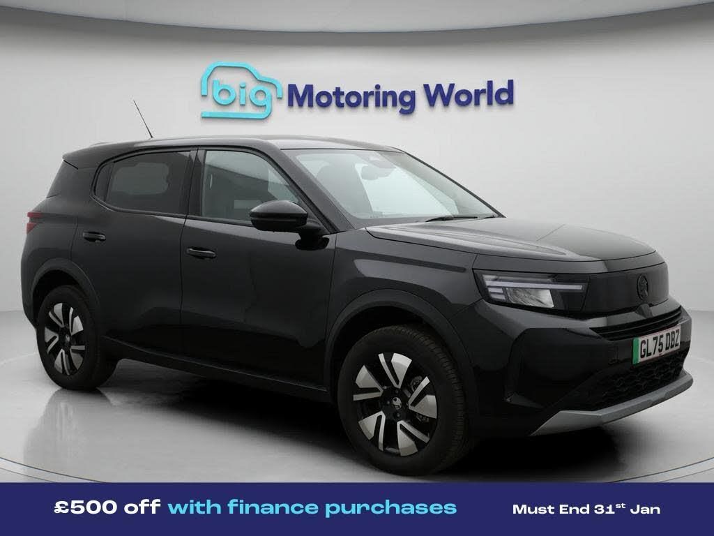 £500 towards your finance depo-Our Vauxhall Frontera Electric is finished in Black. Specification includes a range of fantastic features including £500 towards your finance deposit, 17'' Alloy Wheels, Apple CarPlay, Android Auto, Satellite Navigation, Privacy Glass, Rear View Camera, Bluetooth, Blind Spot Assist, Parking Sensors Specification information is supplied by CAPHPI and may vary to the actual car. This data does not form any part of a buying contact. Please check specification prior to purchase in-store. The MOT is valid until October 2028, visit bigmotoringworld.co.uk for more photos, a 360 tour, service history and a free HPI report.Were BIG on peace of mind and this Black Vauxhall Frontera Electric has completed our comprehensive 200 point inspection and passed all checks. Its ready for you to drive away with immediate collection in-store. We include a 90-day warranty as standard plus an option to extend for up to 3 years.Reserve this car exclusively for you, safely and securely at bigmotoringworld.co.uk, with a fully refundable £99 deposit. Test drive before you buy, with no commitment, no hassle and a completely haggle free experience. Still searching and want to see thousands more cars? We are BIG on choice with over 8000 cars to choose from.Visit our award winning web site bigmotoringworld.co.uk.Were Big Motoring World and were BIG on what matters to you.