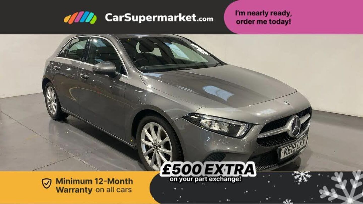 180 degree rear view camera with parking guidelines,7" colour screen in instrument panel,7" touchscreen media display,Active lane keep assist,Attention assist,Brake pad wear indicator warning light,Cruise control + speed limiter,Direct steering,DYNAMIC SELECT with a choice of driving modes (ECO, Comfort, Sport and Individual),ECO start/stop function,Fluid level warning indicator for fuel, oil, coolant and washer fluid,Hard-disk navigation,Lamp failure indicator,Mercedes me connect including emergency call system, accident recovery, breakdown and maintenance management,Outside temperature gauge,Radio aerial integrated into roof spoiler,Service indicator (ASSYST),Speed sensitive power steering,Trip computer,Voice activation,Lowered comfort suspension,DAB Digital radio,Dual bluetooth interface, 2 USB ports (type C),MBUX multimedia system with DAB digital radio and touchpad including satellite navigation,4 Electric Front and Rear windows,Active aerodynamics with AIRPANEL in the front apron,Adaptive brake lights,Blue tinted glass,Body colour bumpers,Body colour door handles,Body colour side skirt,Body coloured door mirrors,Chrome beltline trim,Chrome weather strip,Diamond radiator grille with black pins with one louvre in silver + chrome insert,Electric adjustable and heated door mirrors with integrated LED side indicators,Exhaust system - Twin trapezoidal tailpipes in polished stainless steel,Headlamp assist automatic headlamp activation,Heated glass rear windscreen + timer control,LED high performance headlamps with integrated LED daytime running lights,LED tail lamp,LED third brake light,Rain sensor windscreen wipers,Rear fog lights,Rear wiper,12V socket,3 Spoke leather multi function steering wheel,40:20:40 split folding rear seats,Air vents surround and cruciform nozzle in silver chrome,Artico man-made leather/Fleron fabric upholstery,Auto Mercedes-Benz child seat recognition sensor,Black roof lining,Controller on centre console with chrome surround,Cup holder and stowage compartment lighting,Freight packaging without tie-down hooks,Front centre armrest with storage compartment,Front comfort seats with adjustable head restraints,Front door sills with Mercedes Benz lettering,Front doors with ambient and signal light,Front footwell lights,Front reading lamps,Front seat backs luggage nets,Front seat cushion length adjustment,Front signal exit lamp,Front vanity lights,Gearshift paddles on steering wheel,Handle recess/closing light,Height/reach adjustable steering column,Illuminated glovebox,ISOFIX Child seat top tethers and anchor fixings,Manual height adjustable front seats,Oddments tray lighting,Rear head restraints,Rear Reading Lamps,Seat occupancy sensor for front passenger seat,Spectacles compartment for driver,Storage compartment under load area floor,Stowage compartment in centre console with retractable cover,Sunvisors with illuminated vanity mirrors,Touchpad,Touchpad illumination,Twin front cupholders,Two zone thermotronic luxury automatic climate control,Light and sight pack - A Class,Seat comfort pack - A Class,3 rear 3 point seatbelts,ABS with Brake Assist,Active bonnet,Active brake assist includes forward collision warning system with autonomous braking,Adaptive brake assist with hold function and hill start assist,Black seatbelts,Childproof locks manually operated for rear doors and electrically operated for rear power windows,Crash responsive emergency lighting,Driver and passenger head and side airbags,Drivers knee airbag,Dual stage driver/passenger airbags,Electronic parking brake,ESP curve dynamic assist,ESP with ASR,Front and rear seatbelt reminder,Tyre pressure monitoring system,Warning triangle and first aid kit,Window airbags,Alarm system/interior protection/immobiliser,Keyless Go,Remote central locking and crash sensor with emergency opening function,Dark carbon fibre interior trim,17" 10 spoke light alloy wheels painted in vanadium silver,Summer tyres,Tirefit sealant kit