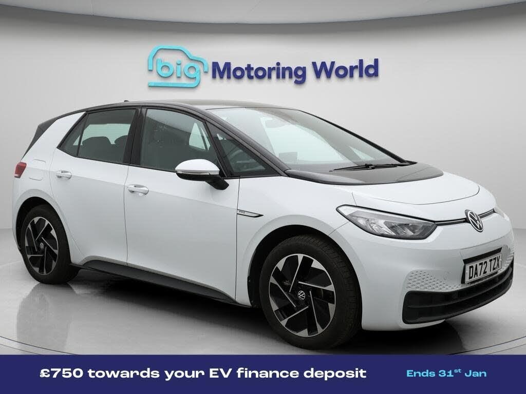 Apple CarPlay,Adaptive Cruise-Our Volkswagen ID.3 is finished in White. Specification includes a range of fantastic features including Apple CarPlay, Adaptive Cruise Control, Lane Assist, Android Auto, Satellite Navigation, Heated Seats, Heated Steering Wheel, Bluetooth, Blind Spot Assist, Parking Sensors Specification information is supplied by CAPHPI and may vary to the actual car. This data does not form any part of a buying contact. Please check specification prior to purchase in-store. The MOT is valid until December 2026, visit bigmotoringworld.co.uk for more photos, a 360 tour, service history and a free HPI report.Were BIG on peace of mind and this White Volkswagen ID.3 has completed our comprehensive 200 point inspection and passed all checks. Its ready for you to drive away with immediate collection in-store. We include a 90-day warranty as standard plus an option to extend for up to 3 years.Reserve this car exclusively for you, safely and securely at bigmotoringworld.co.uk, with a fully refundable £99 deposit. Test drive before you buy, with no commitment, no hassle and a completely haggle free experience. Still searching and want to see thousands more cars? We are BIG on choice with over 8000 cars to choose from.Visit our award winning web site bigmotoringworld.co.uk.Were Big Motoring World and were BIG on what matters to you.