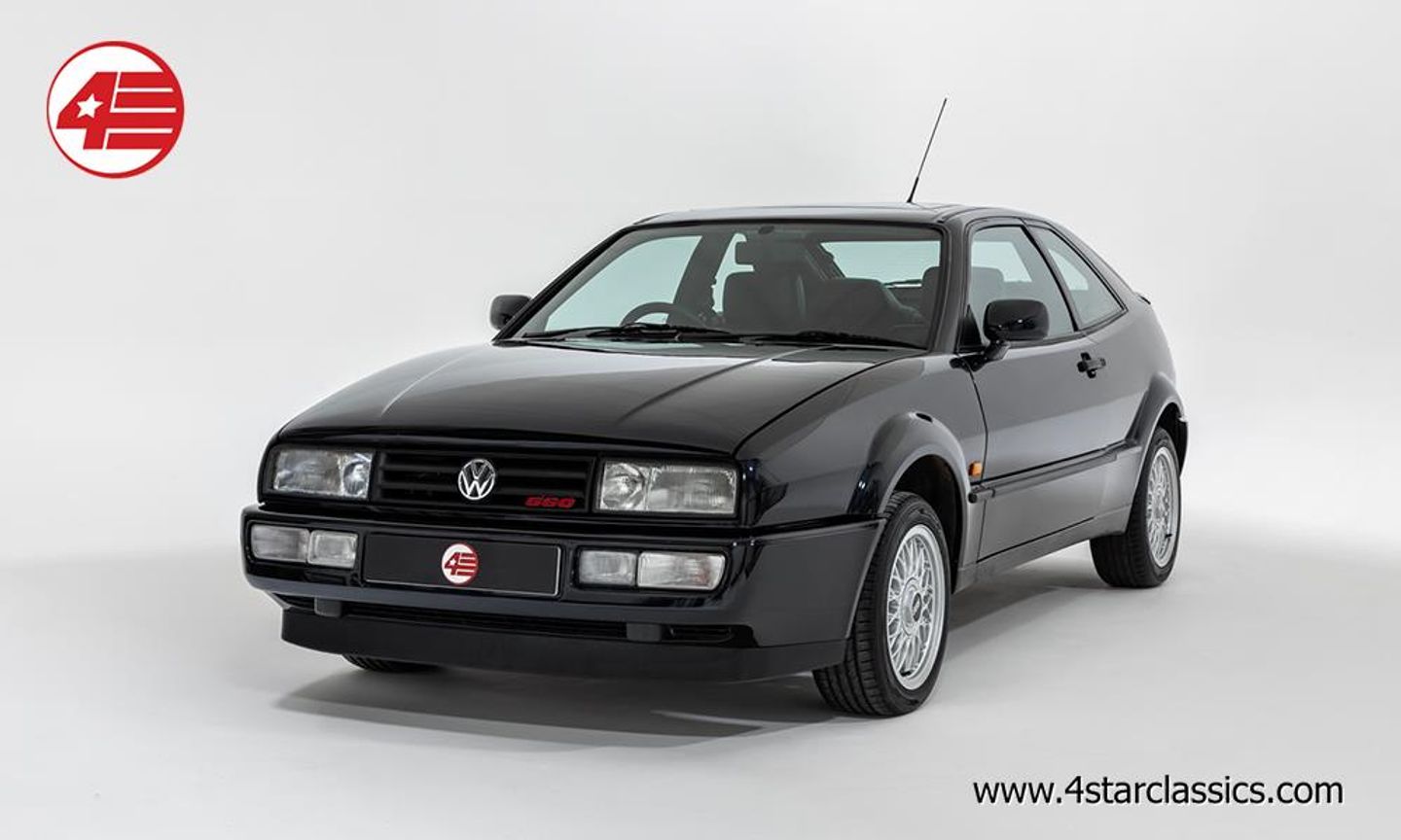 Moonlight Blue Pearl paintwork, Black leather upholstery, 15-inch BBS cross-spoke alloy wheels, 5-speed manual transmission, Electric sunroof, Electric door mirrors, Electric windows, Leather steering wheel and gear knob, Active rear spoiler, Blaupunkt Bremen stereo with Bluetooth and USB, Corrado floor mats, Spare wheel, Spare key.