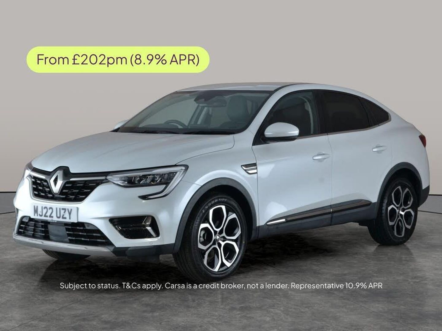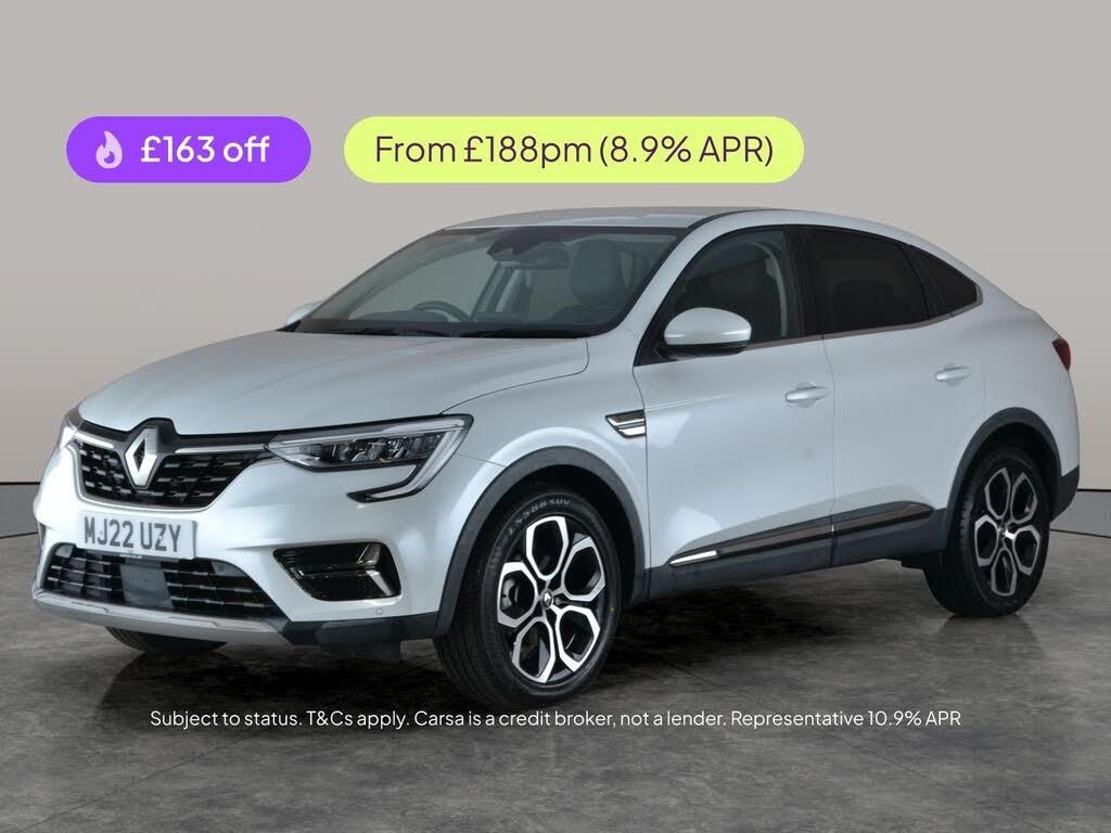 Experience the Renault Arkana, a stylish white SUV packed with premium features. Enjoy seamless journeys with Adaptive Cruise Control, Reversing Camera, and Front & Rear Parking Sensors. Stay connected with Apple CarPlay and Sat Nav, while LED Headlights and Blind Spot Assist add safety to every drive. Benefit from Lane Departure Warning, Traffic Sign Recognition, and custom Driving Modes. The hybrid automatic powertrain makes every journey smooth, and with Climate Control and Bluetooth, comfort and convenience are always at your fingertips. MOT to 16/01/2027. Visit our website for service history, online valuation, full vehicle specification plus multiple images. Any feature/option specified here is from 3rd party data. We cannot guarantee the accuracy of any specification supplied by a 3rd party. We recommend that you physically check the specification of the vehicle on site prior to purchase. This information does not form part of the buying contract. Terms & Conditions apply. We have over 2,000 cars available from our 10 national branches, check our website to see all our stock. Our Trustpilot rating is 4.4/5 with over 9,000 reviews.