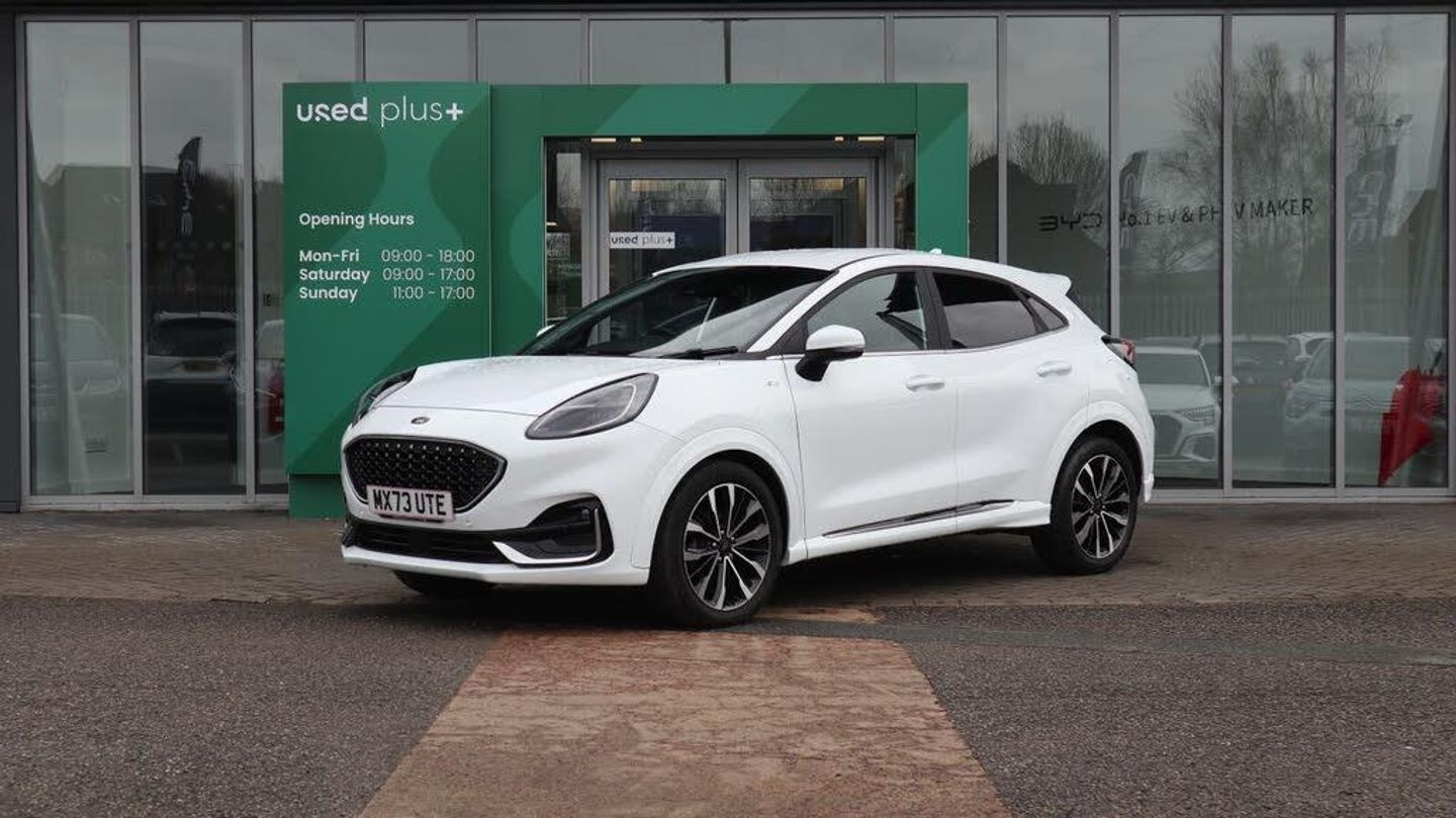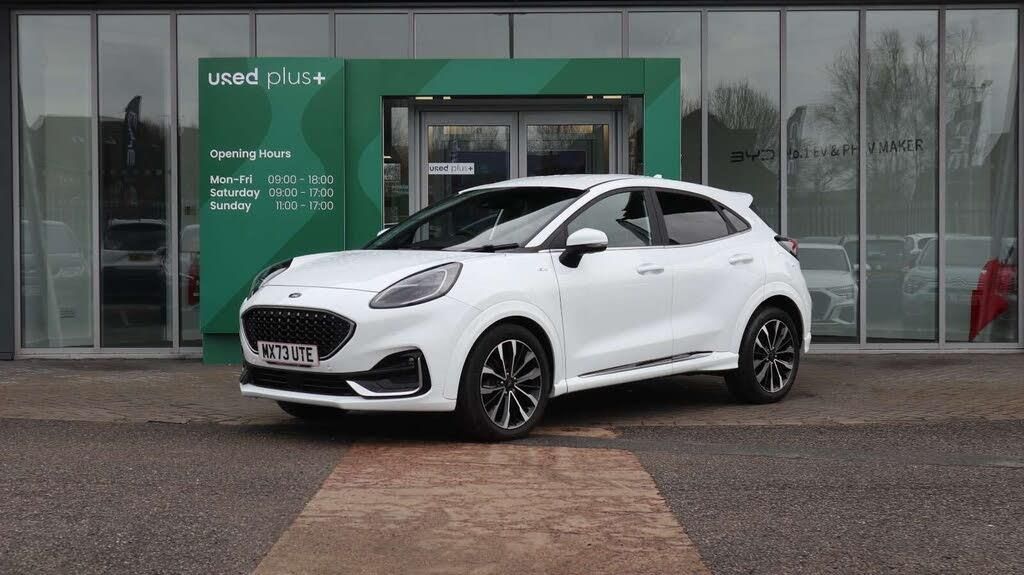 This 2023 Ford Puma ST-Line Vignale offers exceptional value with remarkably low mileage for its age, having covered just 11,653 miles. This stylish compact SUV is powered by an efficient 1.0 litre petrol hybrid engine, meeting Euro 6 emission standards. It features striking fixed LED signature headlamps, ensuring excellent visibility and a distinctive presence on the road. The Puma ST-Line Vignale is designed to impress, and its performance figures demonstrate this. With an acceleration of 0 to 62 miles per hour in just 8.7 seconds, it offers a responsive and engaging driving experience that sets it apart from other vehicles in its class. This combination of advanced technology, efficient hybrid power, and dynamic performance makes this Ford Puma a compelling choice.-This 2023 Ford Puma ST-Line Vignale offers exceptional value with remarkably low mileage for its age, having covered just 11,653 miles. This stylish compact SUV is powered by an efficient 1.0 litre petrol hybrid engine, meeting Euro 6 emission standards. It features striking fixed LED signature headlamps, ensuring excellent visibility and a distinctive presence on the road. The Puma ST-Line Vignale is designed to impress, and its performance figures demonstrate this. With an acceleration of 0 to 62 miles per hour in just 8.7 seconds, it offers a responsive and engaging driving experience that sets it apart from other vehicles in its class. This combination of advanced technology, efficient hybrid power, and dynamic performance makes this Ford Puma a compelling choice.