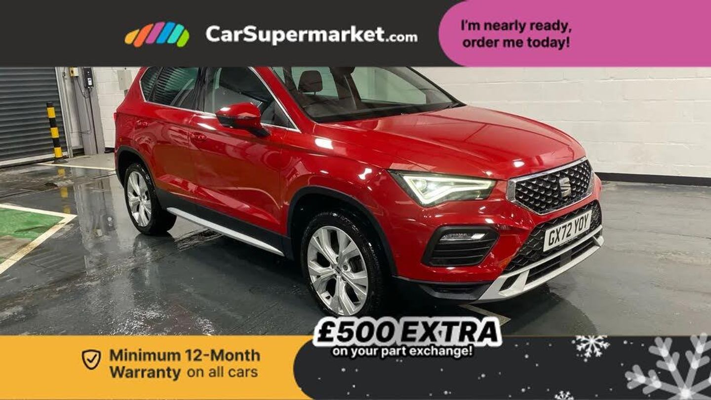 8" Digital cockpit,Colour multi-function on board computer display,E-call,Outside temperature gauge,Progressive power assisted steering,Rear view camera,SEAT drive profile with driving experience button - Normal, Sport, Eco and Individual mode, steering and throttle response,Self parking functionality (includes front and rear parking sensors),Trip computer,Wireless full link smartphone integration,Wireless phone charger,Steering wheel mounted audio/phone controls,Black simulated exhaust pipes,Black wheel arch surrounds,Body colour bumpers,Chrome front grille frame,Chrome roof rails,Chrome side window trim,Dark tinted rear windows,Daytime running lights,Door mirrors with welcome light silhouette,Dynamic headlight range control with self adjusting whilst driving,Electric adjustable/heated/folding door mirrors,Front and rear electric windows,Front grille hot stamping,Full LED headlamps with lens and LED front fog lamps with cornering function,Heated windscreen,Illuminated aluminium front door sill,LED rear tail lights with dynamic indicators,Rear fog lights,Rear side wing doors,Rear wash/wipe,Reflex silver side mouldings,Third brake light,12V socket in front,3 seat bench in 2nd row,60/40 split folding rear seat,Drawer under right front seat,Dual zone climate control,Front and rear head restraints,Front centre armrest,Front seat back storage pockets,Height adjustable driver and passenger seat with lumbar adjustment,ISOFIX points in outer rear seats with top tether anchorage points,Leather steering wheel and gear knob,Microsuede upholstery with front comfort seats,Rear armrest and easy back seat release mechanism from boot,Single front passenger seat,Convenience pack - Ateca,Interior lighting pack - Ateca,Navigation system pack with DAB - Ateca,Safe and driving pack with lane assist - Ateca,3x3 point rear seatbelts,ABS, Traction control system (TCS), Electronic stability control (ESC) and Electronic differential lock system (XDS),Airbags - Driver and front passenger airbag with deactivation, front side, two curtain and driver's knee airbags,Electric parking brake with auto hold function,Front and rear seatbelt reminder,Hill hold control,Manual rear child locks,Tiredness recognition system,Traction control,Tyre pressure monitoring system,Alarm,Keyless entry,Locking wheel bolts,Chrome interior detailing,18" Brillaint silver alloy wheels