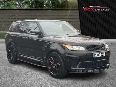 Adaptive cruise control with queue assist and intelligent emergency brake, Bluetooth telephone connection, Dynamic response, Front parking aid with visual display, Gesture tailgate, HDD Premium navigation including voice control, TMC with touch screen and media storage, InControl secure, Mist sensor, Push button starter, Rear park distance control, Speed limiter, Speed sensitive power steering, TFT Virtual Instrument Panel, Trip computer, Bluetooth audio streaming, DAB Digital radio, InControl protect, MP3 compatible radio/single CD player, Rear USB port, USB/aux input socket, Active sports exhaust, Adaptive brake lights, Automatic headlights with high beam assist, Body coloured side sills and bumpers, Daytime running lights, Door/quarter lights in toughened plate glass, Electric front/rear windows/one touch operation, Electric heated, adjustable, folding door mirrors with memory + approach lamp, Follow me home headlights, Front fog lights, Gloss black door mirrors, Gloss black exterior trim, Headlight washers, Heated rear window, Heated washer jets, Heated windscreen, Illuminated Aluminium Tread Plates with Range Rover lettering, Laminated front side windows, Laminated windscreen, LED rear lamps, Quad tailpipes, Rain sensor windscreen wipers, Rear wash/wipe, Remote window closing, Roof rack preparation, Trailer stability assist, 16 way driver/passenger electrically adjustable sports seats with memory, 2 way rear head restraints, 60/40 split folding rear seat, Auto air recirculation, Bag hook in luggage compartment, Centre armrest with cubby box, Climate control memory, Customer configurable interior mood lighting, Driver's footrest, Front and rear cupholders, Front and rear premium carpet mats, Front door storage bin, Front map lights, Front seat back map pockets, Front sports seats, Front stowage pocket, Front/rear passenger grab handles, Glovebox, Heated front and rear seats, Illuminated vanity mirrors, Integrated front head restraints, Isofix child seat preparation, Luggage compartment lighting, Multifunction steering wheel, Pollen filter, Premium Noble Plated Paddle Shift, Reach/rake electric adjustable steering column + entry/exit tilt away, Rear centre armrest, Roller blind loadspace cover, Roof mounted stowage nets, Sports pedals, SVR two tone oxford perforated leather upholstery, Three 12V accessory power outlets, InControl connect Pack - Range rover, 3 point seatbelts on all seats, ABS + EBD + EBA, Auto lock system when vehicle in motion, Auto locking differential, Blue brake calipers, CBC - (Cornering brake control), Curtain airbags, DSC - Dynamic Stability Control, Dual stage Driver/Passenger Airbags, Electric child locks, Electronic parking brake, Electronic traction control, Front seatbelt pretensioners, Front side airbags, Height adjustable front seatbelts, Hill descent control, Roll stability control, Seatbelt warning, Torque vectoring brake, Tyre pressure monitoring system, Keyless entry, Locking wheel nuts, Perimetric and volumetric anti theft alarm, Remote locking, Adaptive dynamics, Electronic air suspension, Terrain Response 2 Auto, Twin speed transfer box, Gloss black tailgate finisher