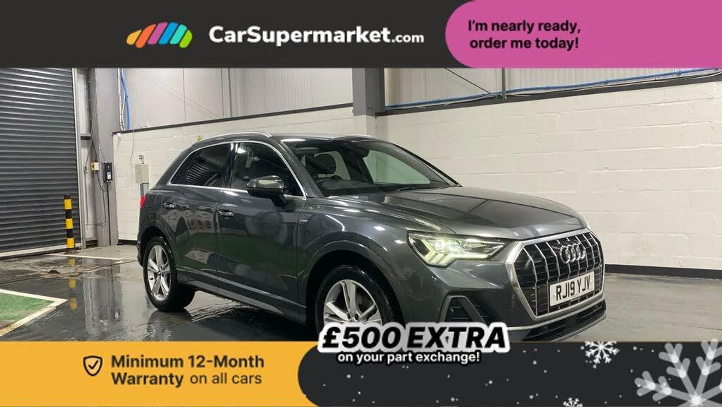 Audi connect safety and service (e-call),Audi drive select,Audi lane departure warning,Audi side assist,Audi smartphone interface,Audi Virtual Cockpit - 10.25" display,Bluetooth interface,MMI navigation plus with MMI touch,Power opening/closing tailgate,Progressive steering,Service interval indicator,Stop/start system,Voice control system,DAB digital radio module,Acoustic windscreen,Aluminium roof rails,Aluminium window trim,Auto dimming rear view mirror,Body colour door mirrors,Body coloured bumpers,Diffuser in matt Platinum grey,Electrically adjustable and heated door mirrors with integrated LED side indicators,Front and rear electric windows,Front fog lights,Front side air inlets in matt platinum grey,Front spoiler blade in matt platinum grey,Grille vertical bars in aluminium silver/Matt,High gloss black finish B and C pillars,Privacy glass,Rain and light sensors,Rear diffuser strip in selenite silver,S Line badge on wings,S Line front and rear bumpers,Side skirt insert in matt Platinium grey,Titanium black radiator grille,12V socket in rear centre console,40:20:40 split folding rear bench seat,Adjustable rear seat bench/backrest with centre armrest and cupholder,Aluminium door sill trims,Black cloth headlining,Dual zone climate control,Front and rear headrests,Front centre armrest with storage compartment and angle adjustment,Illuminated door sill trims with S logo,ISOFIX child seat mounting and Top Tether with front passenger airbag deactivation,Perforated leather gearknob,Stainless steel luggage compartment sill finisher,Stainless steel pedals,Non smoking pack - Q3,3x3 point rear seatbelts,6 airbags - Driver, front passenger, curtain and side windows,Audi pre-sense front with pedestrain and cyclist recognition,Electronic stabilisation control including ABS, ASR and EDL,Hill hold assist,Pre sense basic,Seatbelt monitoring,Tyre pressure warning,Warning triangle and first aid kit,Anti theft alarm,Anti theft wheel bolts,Remote central locking,Dark matt brushed aluminium inlay,MMI touch colour display in gloss black with aluminium surround
