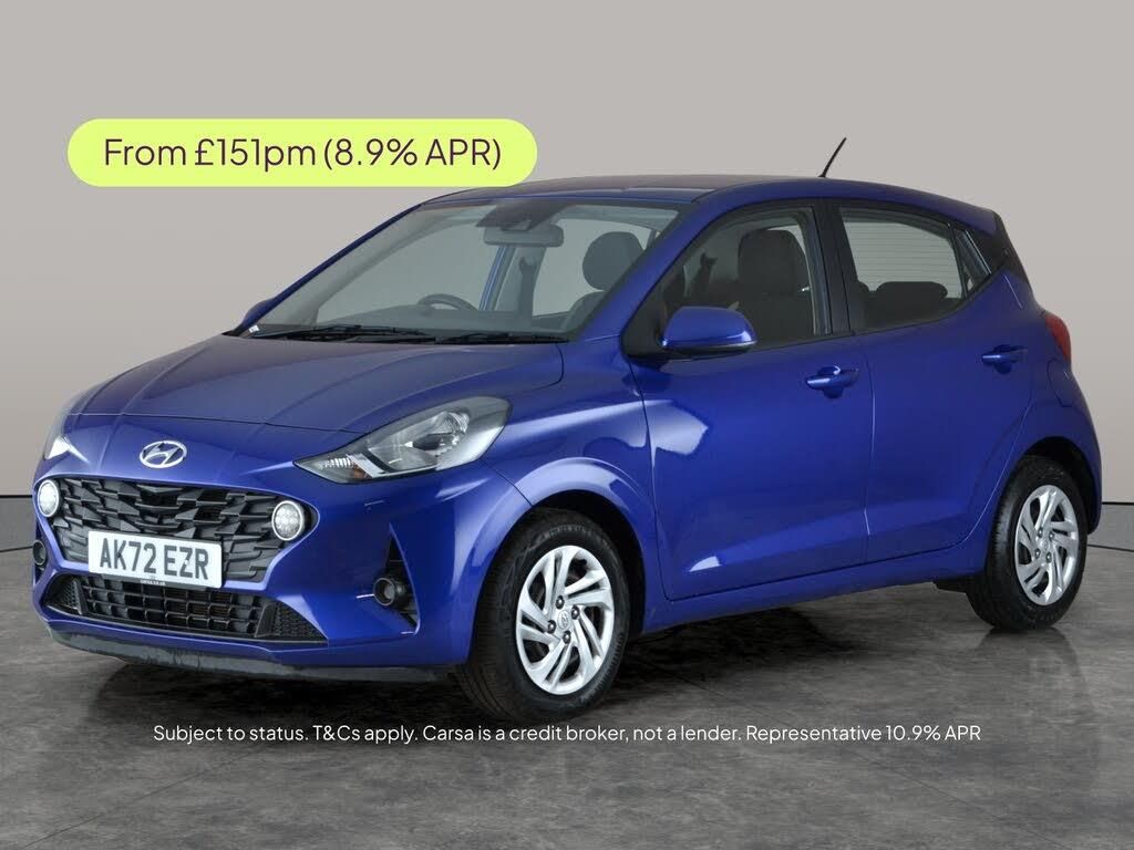 Discover the Hyundai i10 a smart, blue hatchback perfect for city living. Enjoy added peace of mind with its Lane Departure Warning System and find comfort with air conditioning for every journey. Cruise control makes longer trips a breeze, while Bluetooth connectivity keeps you connected and entertained on the go. This i10 blends fun, efficiency, and advanced safety in one stylish package. Book your test drive today. MOT to 17/12/2026. Visit our website for service history, online valuation, full vehicle specification plus multiple images. This vehicle is VAT qualifying. Any feature/option specified here is from 3rd party data. We cannot guarantee the accuracy of any specification supplied by a 3rd party. We recommend that you physically check the specification of the vehicle on site prior to purchase. This information does not form part of the buying contract. Terms & Conditions apply. We have over 2,000 cars available from our 10 national branches, check our website to see all our stock. Our Trustpilot rating is 4.4/5 with over 9,000 reviews.