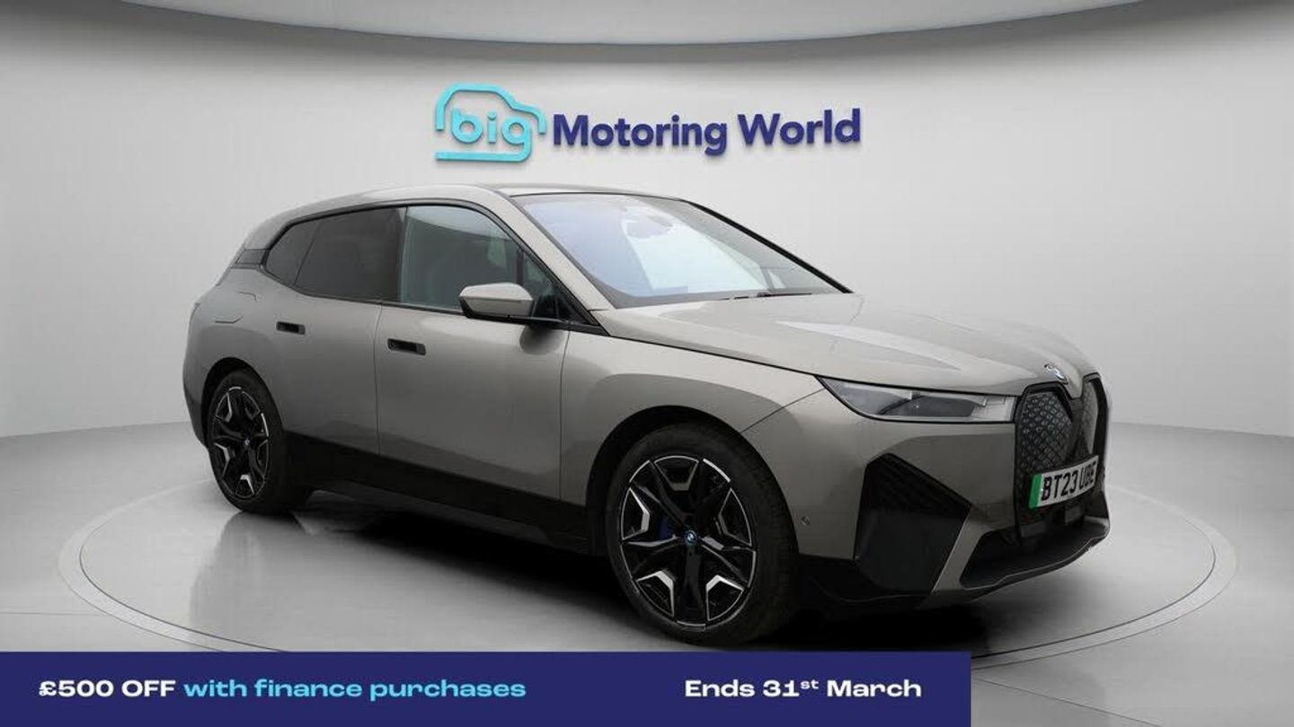 All Wheel Drive,Panoramic Roof-Our BMW iX comes with optional extras worth £1,185. Specification includes a range of fantastic features including All Wheel Drive, Panoramic Roof, Head up Display, 22'' Alloy Wheel, Leather Seats, Apple CarPlay, Harman Kardon Speakers, Connected Package Professional, M Sport Bodykit, Android Auto Specification information is supplied by CAPHPI and may vary to the actual car. This data does not form any part of a buying contact. Please check specification prior to purchase in-store. The MOT is valid until April 2026, visit bigmotoringworld.co.uk for more photos, a 360 tour, service history and a free HPI report.Were BIG on peace of mind and this Grey BMW iX has completed our comprehensive 200 point inspection and passed all checks. Its ready for you to drive away with immediate collection in-store. We include a 90-day warranty as standard plus an option to extend for up to 3 years.Reserve this car exclusively for you, safely and securely at bigmotoringworld.co.uk, with a fully refundable £99 deposit. Test drive before you buy, with no commitment, no hassle and a completely haggle free experience. Still searching and want to see thousands more cars? We are BIG on choice with over 8000 cars to choose from.Visit our award winning web site bigmotoringworld.co.uk.Were Big Motoring World and were BIG on what matters to you.