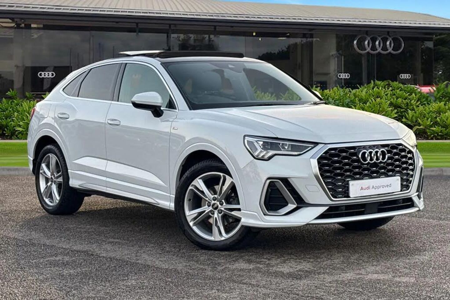 Feast your eyes on this Audi Approved Q3 Sportback S Line TFSI in Glacier white with its 19" 5-twin-spoke dynamic design alloy wheels which look superb out on the roads. The LED headlights with LED rear lights create that strong visibility in all weather conditions and would be great for standing out at night. This Q3 comes fitted with some brilliant features, such as the Comfort and Sound pack which does include the rear-view camera, which creates that additional vision and assists whilst maneuvering those tighter spaces. It also includes the Sonos 3D premium sound system, for that excellent sound experience that everyone can enjoy. Another fantastic feature, is the heated front seats which are perfect for those cooler mornings. The panoramic glass sunroof floods the cabin with light and is great for those sunny days. The Dual-zone electronic climate control can be adjusted to your driving preference on any journey. Connectivity is made seamless on all journeys, thanks to the Bluetooth interface. The privacy glass creates that additional privacy for passengers on every journey in this Q3. The hill hold assist feature, makes all hill starts even smoother. the multimedia interface allows you to access different media, such as Apple Carplay and Android Auto, giving you access to apps like Spotify, Google Maps, Apple Music and other apps also. The Audi drive select feature lets you choose your prefered drive mode on any journey, for a more personalised driving experience. The driver assist can also be adjusted to your driving preference on all journeys. This vehicle will benefit from remainder of Manufacturer's Warranty or minimum 1-year warranty and 1 year's roadside assistance at the point of purchase. Please contact Crewe Audi for more information or enquire online today. This vehicle meets the requirements ULEZ. By driving a low emissions vehicle, you are helping to improve air quality and reduce the health risks associated with poor air quality.
