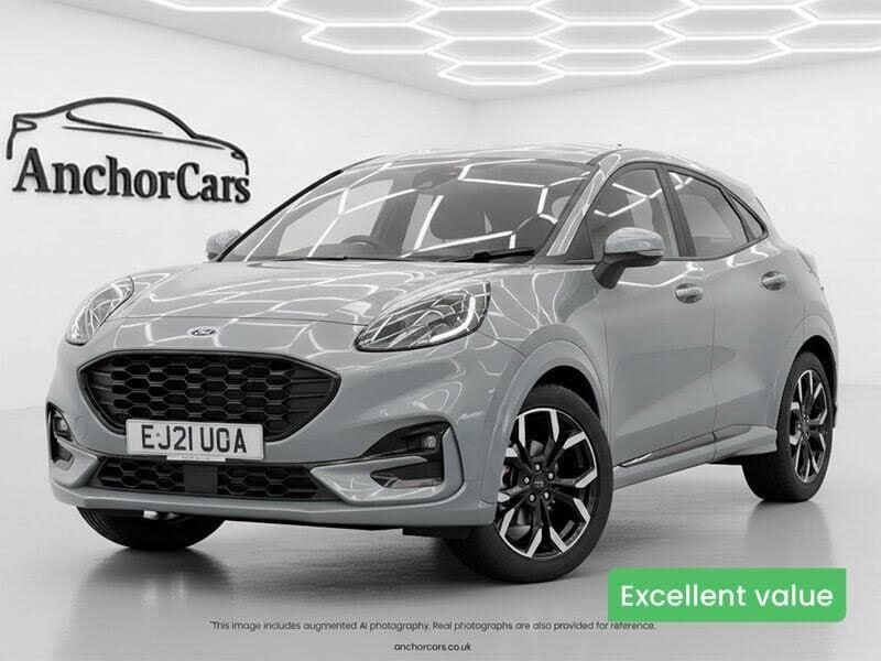 Now in stock at Anchor Cars, this 2021 Ford Puma 1.0T EcoBoost MHEV ST-Line X is a stylish and fun-to-drive compact SUV with clever hybrid tech and plenty of features. Powered by a punchy 1.0-litre mild hybrid petrol engine producing 125PS and paired with a manual gearbox, it offers excellent fuel efficiency without sacrificing performance. Finished in sleek silver with sporty ST-Line styling, this 5-door hatchback is practical, comfortable, and ideal for both city driving and longer journeys. Owners love its responsive handling, modern design, and great boot spaceand with our pricing set below similar models, its fantastic value. Anchor Cars is part of Anchor Cars Ltdthe award-winning group also behind Anchor Cars Tadley, Anchor EV, and Vanlux. We were named Used Car Supermarket of the Year 2025 and proudly hold a 5-star rating on AutoTrader. Call us today on 0118 9711 799 to find out more or arrange a viewing. We also offer UK-wide delivery, optional care packs, and a full customer guarantee for complete peace of mind.