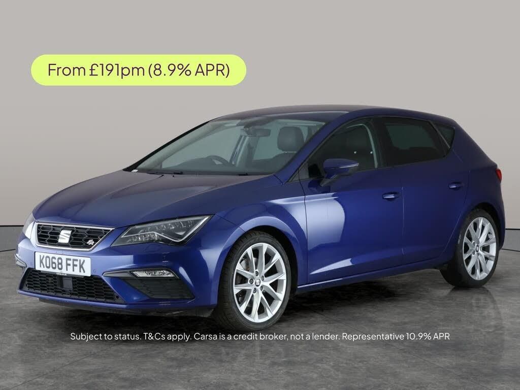 Experience the thrill of the SEAT Leon FR Sport, finished in a striking blue. Enjoy Apple CarPlay, seamless Bluetooth audio streaming, and intuitive sat nav for effortless journeys. LED headlights ensure exceptional visibility, while front and rear parking sensors make every manoeuvre simple. Paddle shift adds sporty control to your drive, and the dual-zone climate control keeps everyone comfortable. Discover style, technology, and excitement every time you get behind the wheel. 3 services recorded, last serviced on 12/11/2025 at 76,720 miles. MOT to 18/11/2026. Visit our website for service history, online valuation, full vehicle specification plus multiple images. Any feature/option specified here is from 3rd party data. We cannot guarantee the accuracy of any specification supplied by a 3rd party. We recommend that you physically check the specification of the vehicle on site prior to purchase. This information does not form part of the buying contract. Terms & Conditions apply. We have over 2,000 cars available from our 10 national branches, check our website to see all our stock. Our Trustpilot rating is 4.4/5 with over 9,000 reviews.