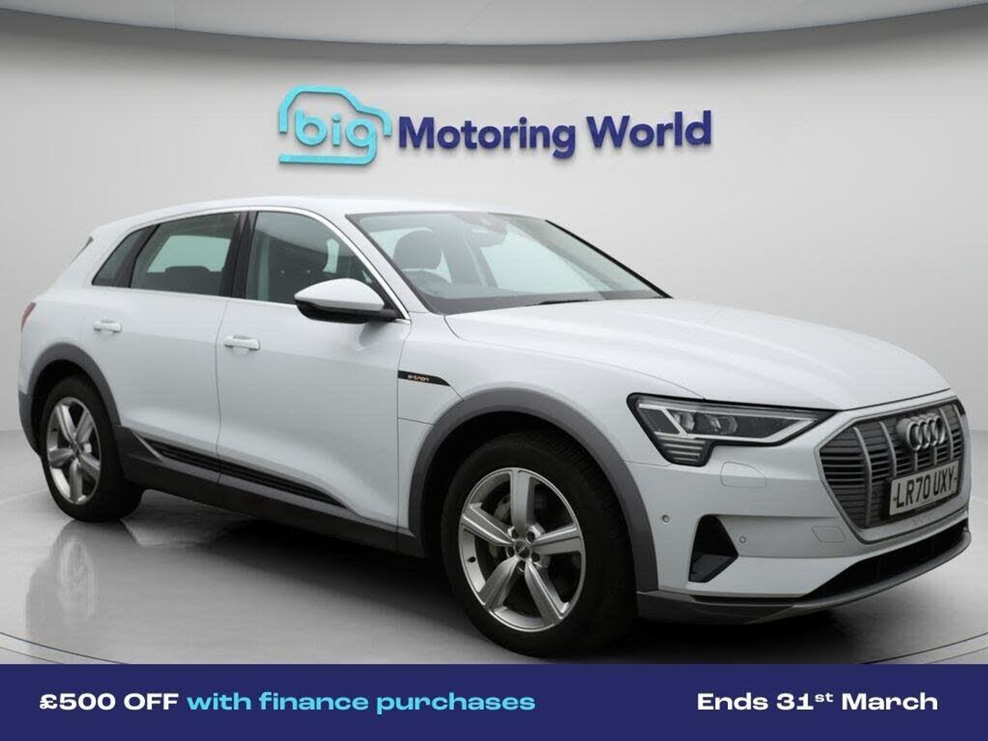All Wheel Drive,Third Row Seat-Our Audi e-tron comes with optional extras worth £750. Specification includes a range of fantastic features including All Wheel Drive, Third Row Seats, 20'' Alloy Wheels, Leather Seats, Air Suspension, Apple CarPlay, Electric Seats, Lane Assist, Android Auto, Satellite Navigation Specification information is supplied by CAPHPI and may vary to the actual car. This data does not form any part of a buying contact. Please check specification prior to purchase in-store. The MOT is valid until September 2026, visit bigmotoringworld.co.uk for more photos, a 360 tour, service history and a free HPI report.Were BIG on peace of mind and this White Audi e-tron has completed our comprehensive 200 point inspection and passed all checks. Its ready for you to drive away with immediate collection in-store. We include a 90-day warranty as standard plus an option to extend for up to 3 years.Reserve this car exclusively for you, safely and securely at bigmotoringworld.co.uk, with a fully refundable £99 deposit. Test drive before you buy, with no commitment, no hassle and a completely haggle free experience. Still searching and want to see thousands more cars? We are BIG on choice with over 8000 cars to choose from.Visit our award winning web site bigmotoringworld.co.uk.Were Big Motoring World and were BIG on what matters to you.