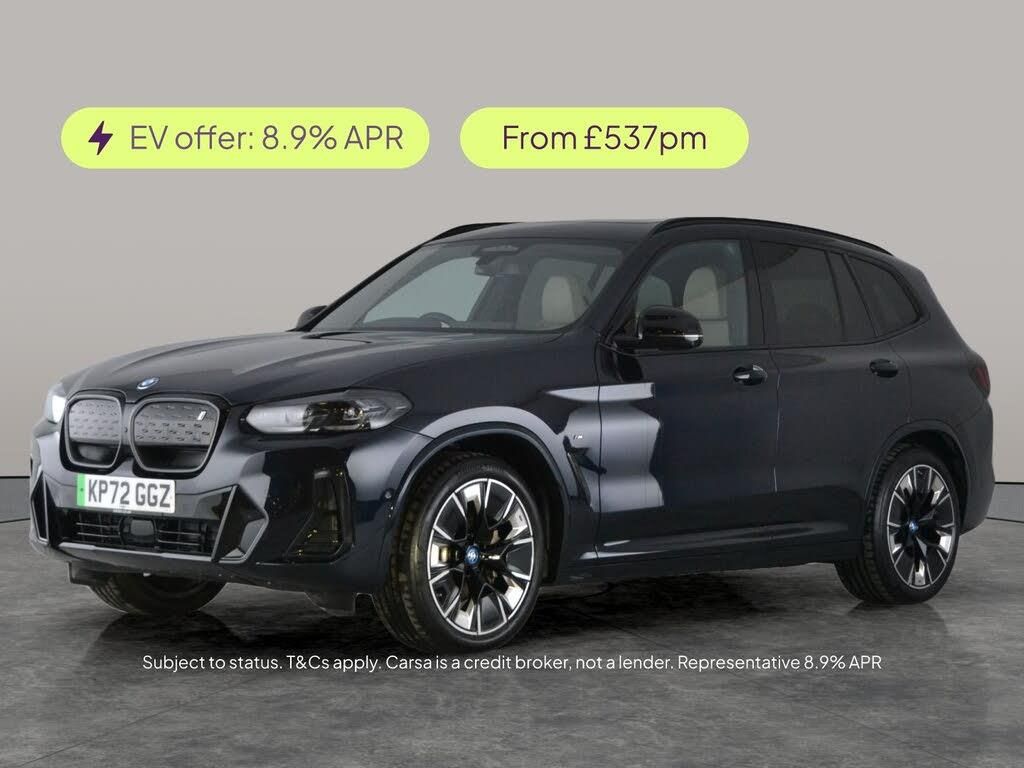 Experience the future with this stylish black BMW iX3 M Sport, complete with a panoramic sunroof for a stunning open feel. Enjoy the immersive Harman/Kardon sound system, gesture controls, and crystal-clear head-up display. Parking is a breeze with Surround View, Reversing Camera, and Parking Assistant Plus. Keyless Entry, Apple CarPlay, premium Vernasca leather seats, Drive Assist, and bright LED headlights make every drive special. All-electric, fully automatic, and ready for you. 1 service recorded, last serviced on 08/10/2024 at 11,546 miles. MOT to 18/10/2026. Visit our website for service history, online valuation, full vehicle specification plus multiple images. Certain features listed may be available via subscription packages at extra costs, please consult with BMW for details. This vehicle is VAT qualifying. Any feature/option specified here is from 3rd party data. We cannot guarantee the accuracy of any specification supplied by a 3rd party. We recommend that you physically check the specification of the vehicle on site prior to purchase. This information does not form part of the buying contract. Terms & Conditions apply. We have over 2,000 cars available from our 10 national branches, check our website to see all our stock. Our Trustpilot rating is 4.4/5 with over 9,000 reviews.