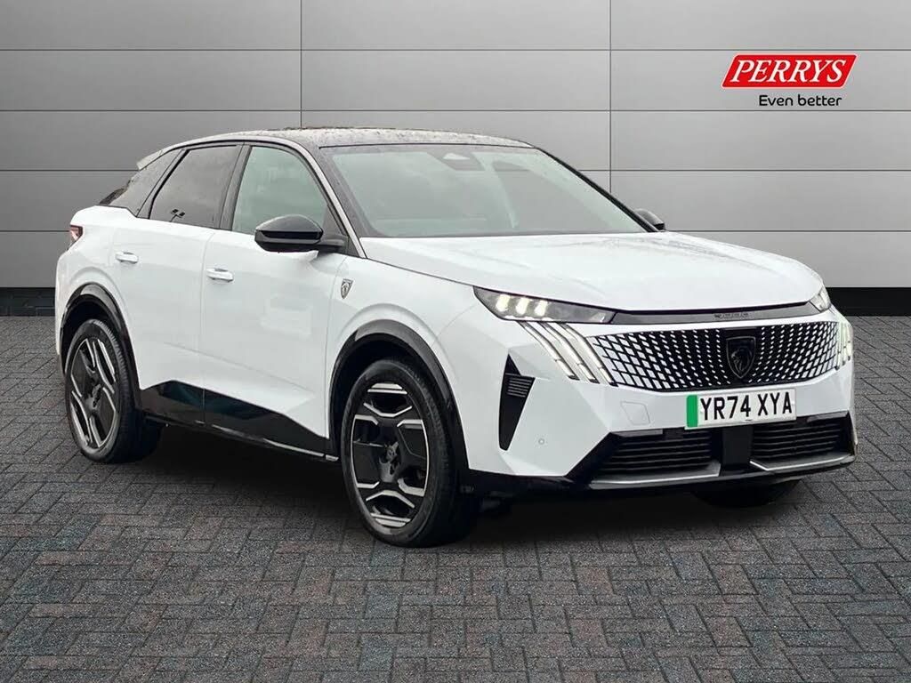 Adaptive cruise control with Stop and Go,Bluetooth with two microphones (Connect up to 2 phones),Drive modes select (Eco, normal and sport) with configurable ambient lighting,Driver foot rest,Driver profile selection,E-call,Exterior temperature indicator with ice warning,Front parking sensor,Front passenger seat detection,Hands free Smart Electric Tailgate (foot operated),Lane keep assist,Multi function trip computer,Natural voice recognition,PEUGEOT i-Cockpit - 21" HD panoramic curved display incorporating instrument panel and touchscreen with 3colour themes,PEUGEOT i-connect advanced HD fully customisable touch screen, Navigation with Tom Tom Live updates and over the air map updates,PEUGEOT SOS and assistance,Rear parking sensor,Remote charge management via My PEUGEOT App,Speed limit and traffic sign recognition and recommendation,Wireless mirror screen with apple carplay and android auto,Wireless smartphone charger with status light and ambient lighting,11 kW triphase Bi-directional on board charger,Dynamic stability control and electronic anti-skid system,Mode 3 type 2 cable for wallbox charging,Multi-link rear suspension,Vehicle-to-load (V2L) preparation,AM/FM bi-tuner,DAB Radio (Digital Audio Broadcasting),Peugeot customisable virtual iToggles,USB-C sockets (2 x front and 2 x rear),3008 model designation badgers front and rear in basalt grey,Acoustic windscreen,Automatic hazard light activation upon heavy brake application,Automatic headlamp activation,Automatic windscreen wiper activation with interval wiping intensity control,Black diamond roof and floating effect rear spoiler finished in nera black metallic,Body coloured exterior door handles,Dark tinted privacy glass for rear door, Tailgate and Quarter windows,Door mirrors - Welcome lighting and integrated LED indicators,Electric adjustable/heated/folding door mirrors,Flat blade wipers with magic wash integrated nozzles,Front and rear electric windows with one touch,Front grille with body coloured accents,Gloss black connecting strip between rear lights,Gloss black finish B pillar,Heated rear window,Laminated windscreen,LED daytime running lights,LED exterior lighting,LED third brake light,Lower front and rear bumper trims in meteor grey,Orbital gloss black door mirrors,Orbital gloss black lower door claddings and widened wheel arches,PEUGEOT shield on front wings,Pixel LED Technology headlights with adaptive high beam assist,Rain sensor,Rear full LED 3D peugeot signature claw effect lights with daylight function,Rear side wing doors,Rear wiper,12V socket in front and boot,2 cupholders in front centre console,2 rear cupholders,3 seat rear bench,4 Grab handles retractable and damped,4 tie down luggage rings,40/20/40 folding rear seat backrest with fixed base,Aluminium pedals,Arch design central console with concealed storage,Cabin high efficiency filter,Cabin thermal pre-conditioning (activated in vehicle or via remote services),Central front armrest with ventilated storage compartment and LED lighting,Chrome finish interior door handles,Compact heated multifunction steering wheel with full grain leather Iced Clay stitching, gloss black and satin chrome detailing and GT badge,Dual zone climate control,Dynamic front seats,e-Toggle compact gear selector,Electric power steering with reach and rake adjustable steering column,Glasses storage box, roof mounted,LED boot light,LED footwell lights,LED front and rear reading lights with push button control,LED Glovebox light,LED illuminated driver and passenger concealed sunvisor mirrors,Luggage cover,Luxury front and rear carpet mats with Iced Clay stitching and GT logo,Mistral black pillars and headlining,Quick launch cabin heating/cooling function,Rear air vents,Rear centre armrest,Rear smartphone holder,Roof lining - Meteor grey,Seatbelt unfastened on the move audible and visual alert for front and rear seats,Single front passenger seat,Stainless steel PEUGEOT door sill trims,Two bag hooks,Two position boot floor,2x Isofix child seat fitting on outer rear seats with zipped cover,3x3 point rear seat belts,ABS (Anti-lock Braking System) with EBD (Electronic Brakeforce Distribution) and EBA (Emergency Braking Assistance),Advanced Emergency Braking System with radar (AEBS3) providing night detection of pedestrians and cyclists,Child locking functionality on rear doors,Driver and front passenger airbags with airbag deactivation function,Driver and front passenger side airbags,Electric parking brake,Electromechanical Low Pitch Single tone horn,Enhanced 3 stage regenerative braking via steering wheel mounted paddles,Front and rear curtain airbags,Front optimised safety headrests and 3 x rear retractable headrests with height adjustable,Front/rear disc brakes,Hill start assist,Post collision safety brake,Seatbelts - Front and rear outer seats with pyrotechnic pretensioners and force limiters,2x Keys (Lock, Unlock, Boot release function with concealed key),Acoustic vehicle alert system (AVAS)