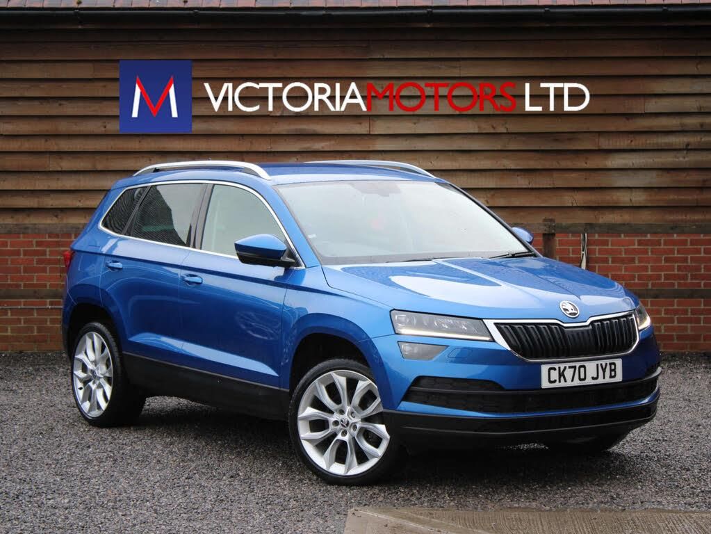 ***FOR VIEWINGS AND TEST DRIVES CALL US ON 01747 838103 TO BOOK AN APPOINTMENT***One owner low mileage automatic Karoq SE L fitted with Skoda's 1.5 litre turbo petrol ULEZ compliant engine producing impressive power of 150 BHP and great fuel economy finished in blue metallic with equipment including leather and suede trim with heated seats, touch screen media unit with sat nav, DAB radio and apple car play resulting in the ability to mirror the apps from your Iphone onto the car media screen including Google maps and Spotify, media connections, bluetooth, parking sensors, air conditioning, auto lights, cruise control, roof rails, alloy wheels, removable rear seats and more, 1 owner, 14500 miles, service history, high up driving position with easy access in and out of the cockpit***PART EXCHANGE AVAILABLE***USE THE FINANCE CALCULATOR ON OUR WEBSITE www.victoriamotorsltd.co.uk AND QUOTE YOURSELF A MONTHLY PAYMENT FIGURE TODAY WITH ZERO DEPOSITS AVAILABLE***