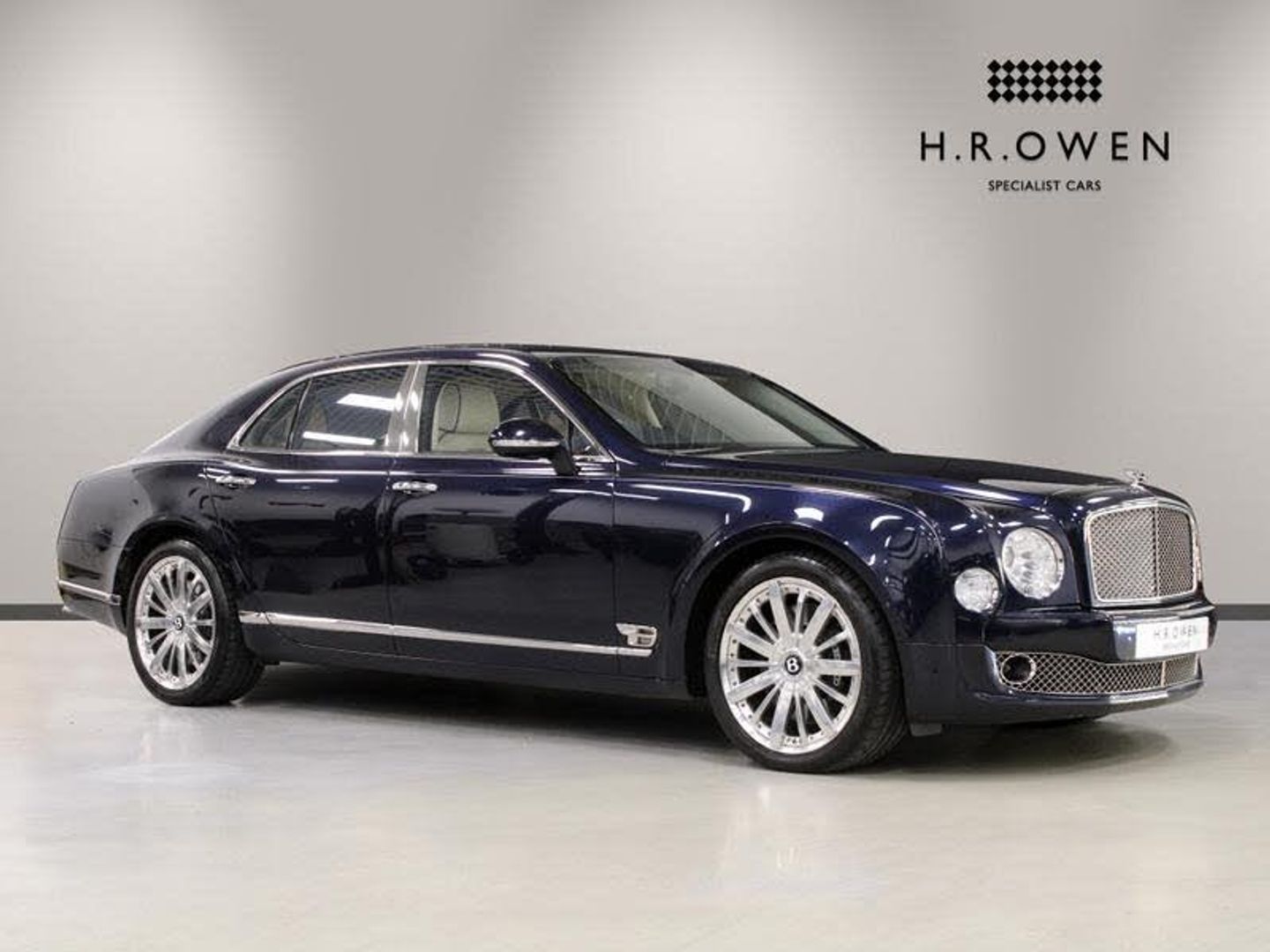 Exterior- Dark Sapphire with Silver Fine Line, Interior- Diamond Quilted Seats in Linen Main and Imperial Blue Secondary Hide, Emblem Stitching and Piping in Contrast Imperial Blue, Dark Stained Burr Walnut Veneer, Mulliner Driving Specification, Mulliner Range Paint Specification, Mulliner Bespoke Interior, Premier Specification, Bentley Rear Entertainment, Front- Large Panel Glass Sunroof, Flying B Radiator Mascot, Front and Rear Deep Pile Wilton Carpets, Twin Illuminated Fold Down Vanity Mirrors, Veneered Picnic Tables, Naim for Bentley Premium Audio System, Adaptive Cruise Control, Side View Camera, TV Tuner, Heated Windshield, Bright Chrome Diamond Knurling, 21-Inch Polished Alloy Wheels