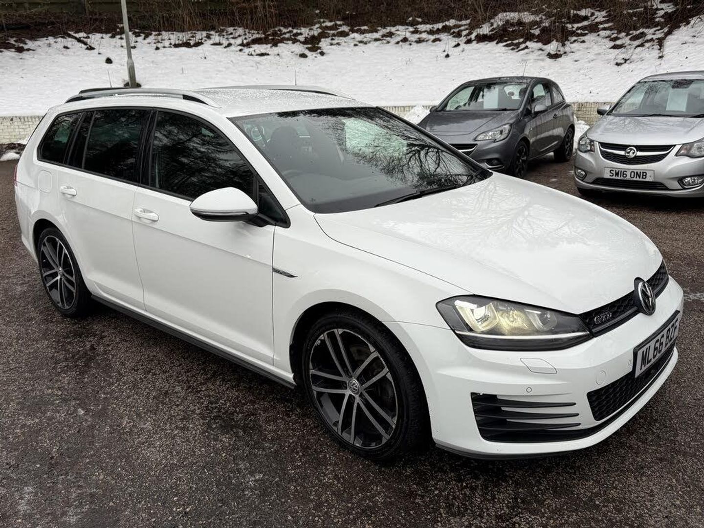 'Lights On' Reminder warning buzzer, Bluetooth Telephone preparation, Brake pad wear indicator warning light, Cruise control + speed limiter, Driver alert system, Driver profile selection, Exterior temperature gauge, Front and rear parking sensors, Instrument cluster in white, Multi function display colour screen, Multifunction computer - Midline, Progressive power assisted steering, Rev counter, Traffic Master traffic alert system, Trip and service interval display, Warning buzzer and light for front seatbelts unfastened, Diesel particulate filter, Lowered sports suspension, 8 Speakers, Auxiliary input socket, Composition media system with Radio/CD/MP3, DAB Digital radio, iPod adaptor, MDI with USB/iPod connection cables, SD card slot, Auto dimming rear view mirror, Bi-xenon headlights with washers + dynamic curve lighting + LED daytime running lights, Black rear diffuser, Body colour bumpers, Body colour door handles, Body colour door mirrors with integral indicators, Body colour rear roof spoiler, Cherry red rear light cluster, Chrome surround for front fog lights, Chrome trimmed radiator grille louvre inserts, Coming/leaving home lighting function, Cornering front fog lights, Dusk sensor + auto driving lights, Electric front windows, Electric rear windows, Electrically adjustable and heated door mirrors, Heat insulated tinted glass 65% light absorbing from B pillar back, Heated rear windscreen, Honeycomb radiator grille - black, Rain sensor, Range adjustable headlights, Rear windscreen washer and wiper with interval delay, Silver roof rails, Sports bumpers, Twin exhaust tailpipe, Windscreen wipers/ intermittent wipe + 4 position delay, 12V socket in luggage compartment, 3 rear headrests, 3 spoke steering wheel, 4 boot load lashing points, 60/40 split folding rear seat, Air conditioning - 2 zone electronic climate control, Ambient lighting, Bag hook in luggage compartment, Courtesy light delay, Cover for storage compartment in centre, Dust/pollen filter, Front + rear carpet mats, Front footwell illumination, Front seat back storage pockets, Grab handles, Height/reach adjust steering wheel, Illuminated door sills, Illuminated vanity mirrors, Isofix preparation for 2 rear child seats, LED reading lights, Load through provision with rear centre armrest and cupholders x2, Lockable, illuminated, cooled glovebox, Luggage compartment cover, removable, Luggage compartment lighting, Multifunction leather steering wheel with leather gear knob/handbrake grip, Stainless steel pedals, Storage compartment in roof console with cover, Storage compartments in doors, Storage drawer under driver's seat, Sun visors, Variable boot floor, height adjustable and removable, White adjustable panel illumination, Mirror pack - Golf, Winter pack - Golf (when ordered with Bi-Xenon headlights), 3 point height adj front seatbelts + pretensioners, 3 rear 3 point seatbelts, ABS, Child locks on rear doors, Door open warning reflectors, Driver/Front Passenger airbags, Driver/Passenger whiplash optimised head restraints, Drivers knee airbag, Electronic parking brake with auto hold, ESP with EDL + ASR, Front and rear curtain airbags, Front passenger airbag deactivation, Front side airbags, Fuel cut off safety device, Hydraulic Brake Assist (HBA), Pre crash system, Tyre pressure monitor, Warning triangle and first aid kit holder, Alarm with interior protection, Electronic engine immobiliser, Keyless entry, Remote central locking with 2 remote folding keys, Chrome air vent surrounds, Chrome-plated light switch surround, Cyclone decorative inserts, Decorative effect painted inlay - Silver, Gloss black decorative inserts in dash, 18" Nogaro alloy wheels, Space saver spare wheel