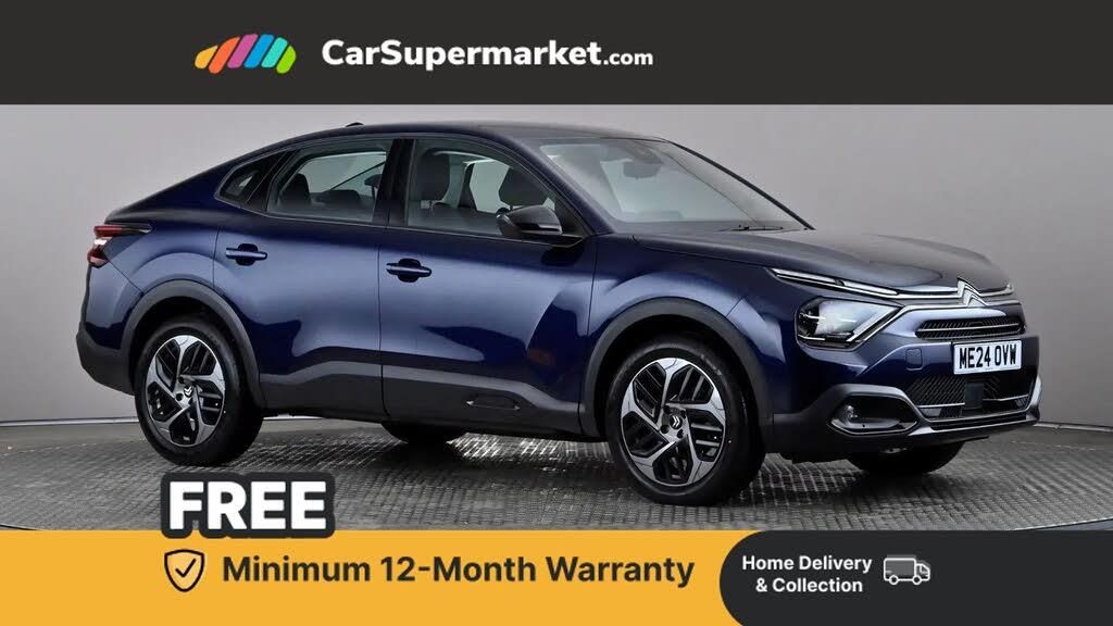 10" high resolution touchscreen with natural voice recognition, swipe gesturing and customisable widgets for media connectivity and vehicle settings,5.5 inch backlit full TFT driver's instrument cluster with LED surround lighting,Apple car play and Android auto,Citroen connect box emergency and assistance system,Citroen Smart Pad Support - integrated support for attaching a tablet computer for front passenger,Cruise control + speed limiter,Driver's head-up display,Electronic Power Steering (EPS),In-crash braking,My Citroen Drive Plus with Navigation,Rear parking sensors,Top rear vision reversing camera,Advanced comfort suspension - double hydraulic stops on front and rear suspension,Bluetooth telephone and audio streaming,DAB Digital radio,Standard audio (6 speaker including 4 lower door speakers and 2 front pillar tweeters),A-pillar painted in body colour and gloss black B-pillar,Automatic headlights,Body colour bumpers,Body colour door handles,Electrically heated, folding and adjustable external rear view mirrors,Front and rear electric windows,Gloss black rear skirt,LED daytime running lights in V signature,LED front fog lamps with static cornering function,LED front headlamps,LED third brake light,Perla Nera black painted external rear view mirrors,Rain sensing automatic front windscreen wipers,Rear boot,Rear side wing doors,Standard interior rear-view mirror with manual day-night switching,Tinted side windows with matt black detail,Variable front intermittent wipers,Welcome and goodbye lighting,12V power outlet and 1x USB Type-C socket for charging and data connection and 1x USB Type-A socket for charging at 1st row,1x USB Type-A socket for charging in 2nd row,2/3 Split folding rear seats backrest,3 seat bench in 2nd row,Ambient lighting around sides of driver's instrument cluster,Boot light,Chevrons cloth and leather effect textile seat upholstery,Dashboard tray in front cabin,Driver and passenger sunvisors with illuminated vanity mirrors,Dual zone automatic air conditioning,Front and rear LED interior lighting,Front head restraints,Grained leather steering wheel with two command blocks,Grey fabric interior door decoration,Height adjustable driver's seat with adjustable lumbar support,Height adjustable front passenger seat,Height and reach adjustable steering wheel,Map pockets in rear of front seats,Raised centre console with armrest and two cup holders,Rear head restraints,Single front passenger seat,Storage drawer in front cabin,High level acoustic insulation pack - C4/C4 X/e-C4 X,3x3 point rear seatbelts,ABS,Driver and front passenger airbags,Electric parking brake,ESP,Front seatbelt pretensioners,Hill start assist,Manual child lock in second row,Manual deactivation of front passenger airbag,Row 1 and 2 curtain airbags,Row 1 side thorax airbags,Seatbelt unfastened on the move warning,Tyre underinflation detection,Anti-theft alarm (volumetric protection),Remote locking with deadlocks,18" Bi-tone painted aeroblade alloy wheels with anti-theft locking wheel nuts,Puncture repair kit with compressor