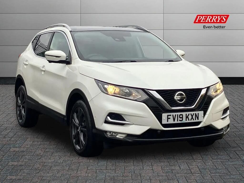 Advanced drive assist display 5'' TFT coloured screen,Android Auto,Apple CarPlay preparation,Bluetooth connectivity,Electric speed sensitive power steering,Front parking sensors,Intelligent around view monitor,Intelligent parking assist,Lane departure warning system,Nissan connect evo 7" touchscreen navigation and entertainment system,Normal or sport selectable steering,Outside temperature sensor,Push button starter,Rear parking sensors,Rear view camera,Service interval indicator,Smartphone integration,Stop/start system,Tomtom connected services,Traffic sign recognition,Trip computer,Voice control system,Diesel particulate filter,Nissan chassis control (intelligent ride control, intelligent trace control, intelligent engine brake),6 speakers,AM/FM radio, CD audio system,Aux-in socket,DAB Digital radio,Rear USB connection,Steering wheel mounted audio controls,USB port,Anti dazzle rear view mirror,Auto wipers,Body colour bumpers,Body coloured door handles,Body coloured door mirrors,Chrome window surround,Daytime running lights dip function when turn signal applied,Electric folding door mirrors,Electric front and rear windows with one touch illuminated window controls,Electric front/rear windows,Electrically adjustable door mirrors,Front fog lights,Halogen headlights,Heated door mirrors,High beam assist,Intelligent auto headlights,LED indicators in door mirrors,Matt silver roof rails,One touch 4x auto windows with illuminated switches,Privacy glass,Rear roof spoiler,Rear wiper with reverse link,Shark fin antenna,Signature LED daytime running lights,Underbody vortex generators,2 X front 12v power sockets,3 height adjustable rear headrests,60/40 split folding rear seat,Ambient lighting,Ambient lighting in centre console,Boot lighting,Centre console storage box/armrest,Chrome interior door handles,Cloth upholstery,Configurable luggage board system,Driver's seat manual height adjust,Dual zone climate control,Front and rear door pockets with bottle holders,Front and rear seat belt pre-tensioners with load limiters,Height adjustable front headrests,ISOFIX restraints on outer rear seats x2,Leather D shaped steering wheel,Leather gear lever,Leather knee pad,Manual height adjustable front passenger seat,Manual lumbar support on driver seat,Parcel shelf stow function under luggage board,Pollen filter,Rear armrest with 2 cupholders,Synthetic leather wrapped door handle with contrasting stitching,Tilt/telescopic adjustable steering wheel,Safety shield plus pack - Qashqai,6 airbags - Driver, front passenger, curtain and side airbags,ABS, ESP, EBD and brake assist,Auto hold function,Child locks on rear doors,Electronic parking brake,Front and rear seat belt warning,Front passenger airbag deactivation,Height adjustable front seatbelts,Hill start assist,Intelligent emergency braking with pedestrian recognition,Three 3 point rear seatbelts,Tyre pressure monitoring system,Anti-theft immobiliser,Intelligent Key,Remote central locking,Thatcham Cat.1 alarm,Glossy black dash trim,18" Alloy wheels,Tyre puncture repair kit
