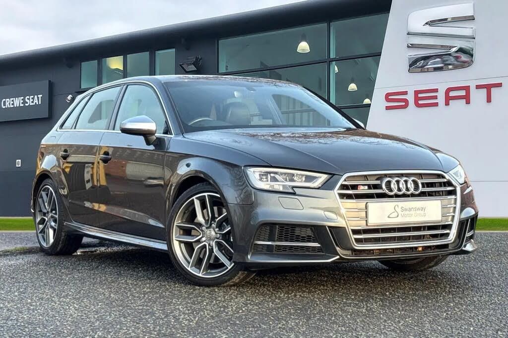 Start/Stop, Bluetooth, Sat Nav, Aux In, DAB, Light and Rain Sensor, AC/Climate, Isofix, Advanced Safety, Collision Detection;**Please note that this vehicle may be located off-site at our compound please call ahead to book a viewing/test drive** Finished in striking Dayton Grey, this Audi S3 2.0 TFSI Sportback S Tronic quattro is a rare and highly desirable performance hatchback that blends everyday practicality with thrilling capability. Sitting on 18 inch alloy wheels in the 5 twin spoke star design with a contrast grey and diamond cut finish, it has a purposeful and sporty stance that is further enhanced by S design body styling, S sport suspension and the platinum grey S grille with chrome dual struts and S3 badging. Power comes from the renowned 2.0 TFSI engine paired with the smooth and responsive S Tronic automatic gearbox and Audi?s quattro all wheel drive system, delivering confident performance in all conditions while meeting Euro 6 emissions standards with stop/start technology. The exterior is complemented by aluminium effect door mirror housings, aluminium window trims, LED headlights with LED rear lights and dynamic rear indicators, headlight washers and dual branch oval twin exhaust tailpipes with a chrome finish. Subtle details such as the Audi Beam and black painted front brake calipers with S3 logos add to its premium feel. The flat bottomed, three spoke leather multifunction steering wheel with shift paddles puts control firmly in the driver?s hands, while illuminated door sill trims with the S logo and S3 branded instrument dials underline the car?s performance pedigree. Pra...