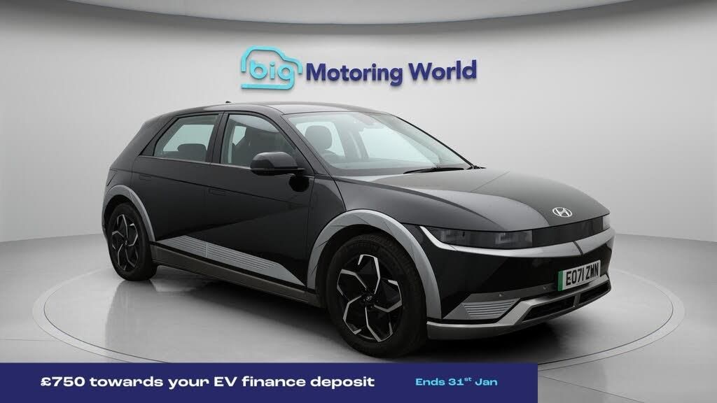 £750 towards your finance depo-Our Hyundai IONIQ 5 is finished in Black. Specification includes a range of fantastic features including £750 towards your finance deposit, 19'' Alloy wheels, Apple CarPlay, Adaptive Cruise Control, Lane Assist, Android Auto, Satellite Navigation, Heated Seats, Wireless Phone Charging, Rear View Camera Specification information is supplied by CAPHPI and may vary to the actual car. This data does not form any part of a buying contact. Please check specification prior to purchase in-store. The MOT is valid until September 2026, visit bigmotoringworld.co.uk for more photos, a 360 tour, service history and a free HPI report.Were BIG on peace of mind and this Black Hyundai IONIQ 5 has completed our comprehensive 200 point inspection and passed all checks. Its ready for you to drive away with immediate collection in-store. We include a 90-day warranty as standard plus an option to extend for up to 3 years.Reserve this car exclusively for you, safely and securely at bigmotoringworld.co.uk, with a fully refundable £99 deposit. Test drive before you buy, with no commitment, no hassle and a completely haggle free experience. Still searching and want to see thousands more cars? We are BIG on choice with over 8000 cars to choose from.Visit our award winning web site bigmotoringworld.co.uk.Were Big Motoring World and were BIG on what matters to you.