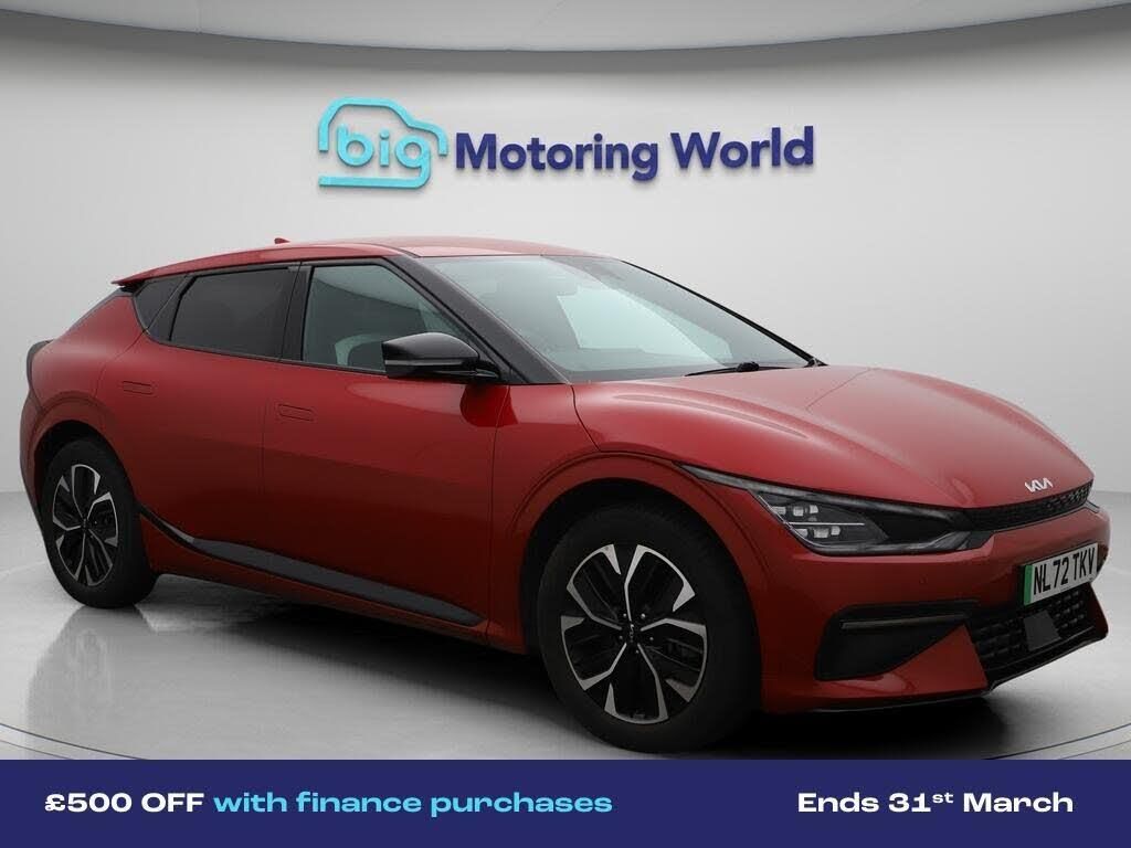 £500 towards your finance depo-Our Kia EV6 is finished in Red. Specification includes a range of fantastic features including £500 towards your finance deposit, 19'' Alloy wheels, Part Leather Seats, Apple CarPlay, Adaptive Cruise Control, Lane Assist, Android Auto, Satellite Navigation, Privacy Glass, Heated Seats Specification information is supplied by CAPHPI and may vary to the actual car. This data does not form any part of a buying contact. Please check specification prior to purchase in-store. The MOT is valid until November 2026, visit bigmotoringworld.co.uk for more photos, a 360 tour, service history and a free HPI report.Were BIG on peace of mind and this Red Kia EV6 has completed our comprehensive 200 point inspection and passed all checks. Its ready for you to drive away with immediate collection in-store. We include a 90-day warranty as standard plus an option to extend for up to 3 years.Reserve this car exclusively for you, safely and securely at bigmotoringworld.co.uk, with a fully refundable £99 deposit. Test drive before you buy, with no commitment, no hassle and a completely haggle free experience. Still searching and want to see thousands more cars? We are BIG on choice with over 8000 cars to choose from.Visit our award winning web site bigmotoringworld.co.uk.Were Big Motoring World and were BIG on what matters to you.