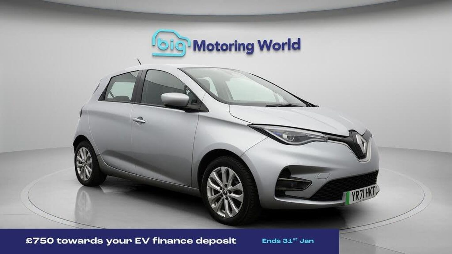 £750 towards your finance depo-Our Renault Zoe comes with optional extras worth £600. Specification includes a range of fantastic features including £750 towards your finance deposit, Lane Assist, Satellite Navigation, Internet, Bluetooth, Parking Sensors, Cruise Control, Climate Control, Voice Control, DAB Radio Specification information is supplied by CAPHPI and may vary to the actual car. This data does not form any part of a buying contact. Please check specification prior to purchase in-store. The MOT is valid until December 2026, visit bigmotoringworld.co.uk for more photos, a 360 tour, service history and a free HPI report.Were BIG on peace of mind and this Grey Renault Zoe has completed our comprehensive 200 point inspection and passed all checks. Its ready for you to drive away with immediate collection in-store. We include a 90-day warranty as standard plus an option to extend for up to 3 years.Reserve this car exclusively for you, safely and securely at bigmotoringworld.co.uk, with a fully refundable £99 deposit. Test drive before you buy, with no commitment, no hassle and a completely haggle free experience. Still searching and want to see thousands more cars? We are BIG on choice with over 8000 cars to choose from.Visit our award winning web site bigmotoringworld.co.uk.Were Big Motoring World and were BIG on what matters to you.