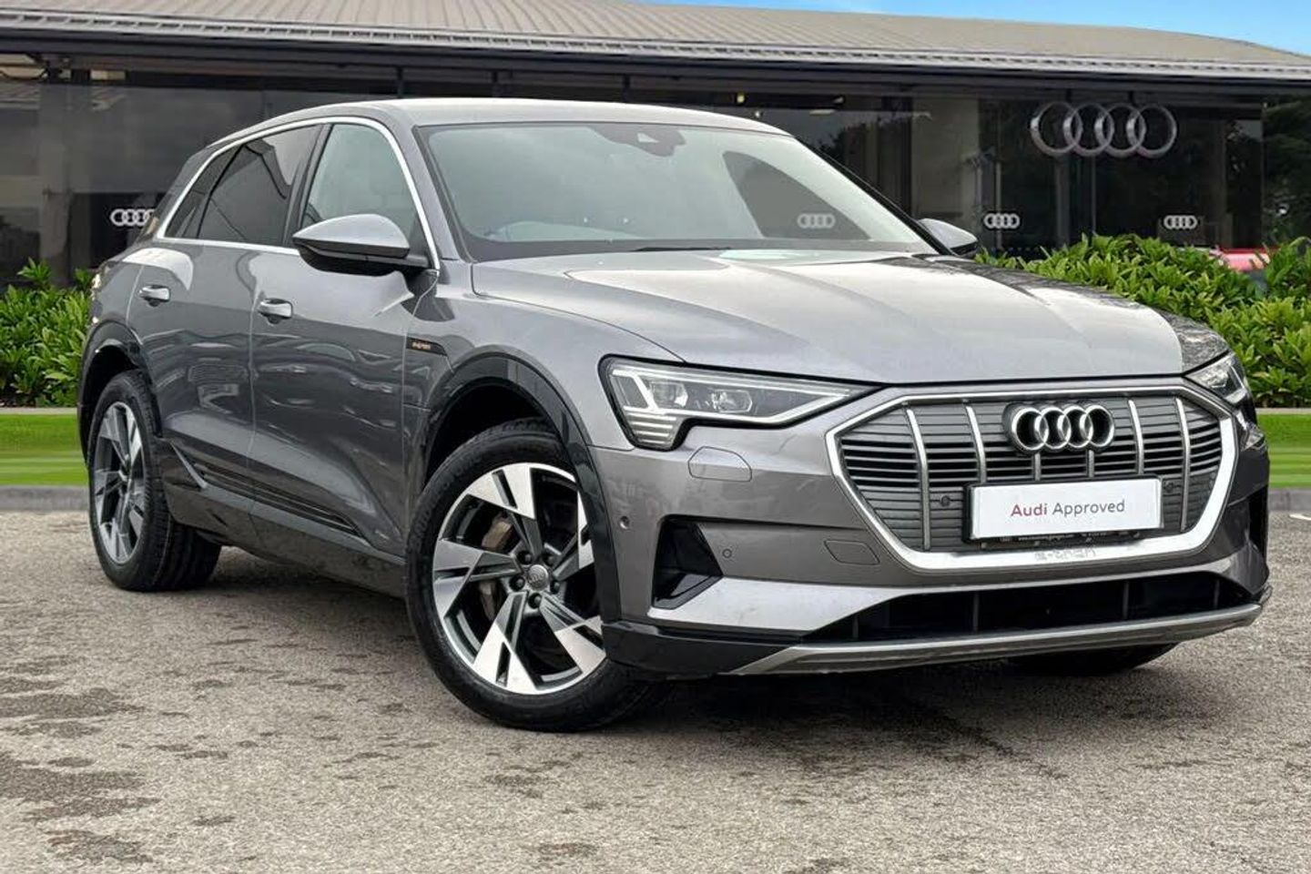 Finished in striking Daytona Grey, this Audi e-tron delivers a refined yet powerful all-electric driving experience. Producing 300 kW through Audi's legendary quattro all-wheel drive, it offers smooth, instant acceleration with exceptional stability and confidence in all conditions. Practicality is equally impressive, with a generous 660-litre boot, making it as capable for everyday life as it is for long journeys. Eligible for the Government Grant, it represents a compelling step into premium electric motoring. Sitting confidently on 20-inch alloy wheels, the e-tron is enhanced by adaptive air suspension, automatically adjusting for optimum comfort or a more dynamic feel when you want it. The ride remains composed and quiet, perfectly complementing the car's effortless performance. Visibility and presence come courtesy of sharp LED headlights and LED rear lights, delivering excellent illumination while giving the car a modern, high-end look that's unmistakably Audi. Inside, the cabin is calm, spacious and beautifully finished. Heated, electrically adjustable front seats with lumbar support and memory, black cloth headlining, graphite grey inlays and aluminium door sills create a premium yet understated atmosphere. Split-folding rear seats and a power tailgate add everyday versatility. Technology is at the heart of the e-tron. Highlights include Audi Virtual Cockpit, MMI Navigation Plus with twin touchscreens, Audi Smartphone Interface, wireless phone charging, Audi Connect, a 360° parking system, rear camera and advanced safety features such as Audi Pre-Sense and lane departure warning. With 11 kW onboard charging, remote pre-conditioning and dual AC/DC charging access, this is electric driving made For more information on this Audi e-tron, please give us a call and a member of our friendly sales team will be more than happy to help you further to book a test drive or introduce you to a range of flexible finance packages to suit you. This vehicle is fully compliant with either the Clean Air Zone (CAZ) or Ultra Low Emission Zone (ULEZ) standards