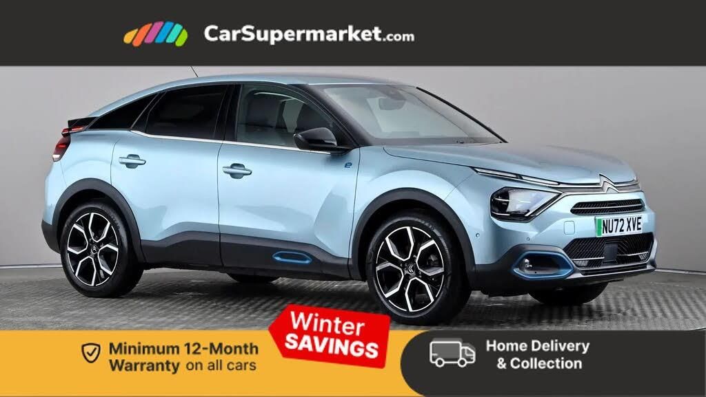 10" high resolution touchscreen user interface, controlling media, connectivity and vehicle settings,5.5 inch backlit full TFT driver's instrument cluster with LED ambient lighting,Active blind spot detection,Apple car play and Android auto,Citroen connect box emergency and assistance system,Citroen connect nav with real time traffic and speedcam,Coffee Break Alert,Driver's head-up display,Electronic Power Steering (EPS),In-crash braking,Speed limiter,Tailgate,Voice commands,Wireless smartphone charging,7.4 kW single-phase onboard charger,Advanced comfort suspension - double hydraulic stops on front suspension and single on rear suspension,Mode 3 charging cable with Type 2 connectors - for accelerated charging from wall boxes and dedicated public charging points,Auxiliary input socket,Bluetooth telephone and audio streaming,Citroen Hifi system with 1 speaker in dashboard centre, 4 woofers in doors, 2 tweeters in pillars and 1 subwoofer,DAB Digital radio,3rd brake light,Automatic headlights,Body colour bumpers,Body colour door handles,Body colour painted external rear view mirrors,Body coloured door mirrors,Boot spoiler,Dark tinted rear windows and side windows with chrome detail,Electrically heated, folding and adjustable external rear view mirrors with courtesy lighting,Electrochrome interior rear-view mirror with automatic day-night switching,Front and rear electric windows,Gloss black rear skirt,Intelligent beam headlights,LED daytime running lights in V signature,LED front fog lamps with static cornering function,LED front headlamps,Rain sensing automatic front windscreen wipers,Rear side wing doors,Rear wiper,Roof aerial,Welcome and goodbye lighting,12V power outlet, 1x USB Type-C socket & data connection, 1x USB Type-A socket at 1st row + 1x USB Type-A socket , 1x USB Type-C socket in 2nd row,3 rear headrests,3 seat bench in 2nd row,Boot light,Dashboard tray in front cabin,Deluxe leather steering wheel with two command blocks,Driver and passenger sunvisors with illuminated vanity mirrors,Dual zone automatic air conditioning,Electrically heated front seats,Front and rear LED interior lighting,Front head restraints,Heated steering wheel,Height adjustable front passenger seat,Height and reach adjustable steering wheel,Map pockets in rear of front seats,Raised centre console with armrest and two cup holders,Rear central folding armrest with cupholders and ski hatch,Remote temperature pre-conditioning,Single front passenger seat,Split folding rear seats,High level acoustic insulation pack - C4/C4 X/e-C4 X,Hype black interior ambience with Siena leather and leather effect textile seats pack - C4 Shine plus/e-series,Safety plus pack with highway driver assist - C4/C4 X/e-C4 X,3x3 point rear seatbelts,ABS,Driver and front passenger airbags,Electric parking brake,ESP,Front seatbelt pretensioners,Hill start assist,Manual child lock in second row,Manual deactivation of front passenger airbag,Post collision safety brake,Row 1 and 2 curtain airbags,Row 1 side thorax airbags,Seatbelt unfastened on the move warning,Tyre underinflation detection,Anti-theft alarm (volumetric protection),Immobiliser,Keyless entry and start,Remote locking with deadlocks,18" Diamond-cut Crosslight alloy wheels with anti-theft locking wheel nuts,Puncture repair kit with compressor