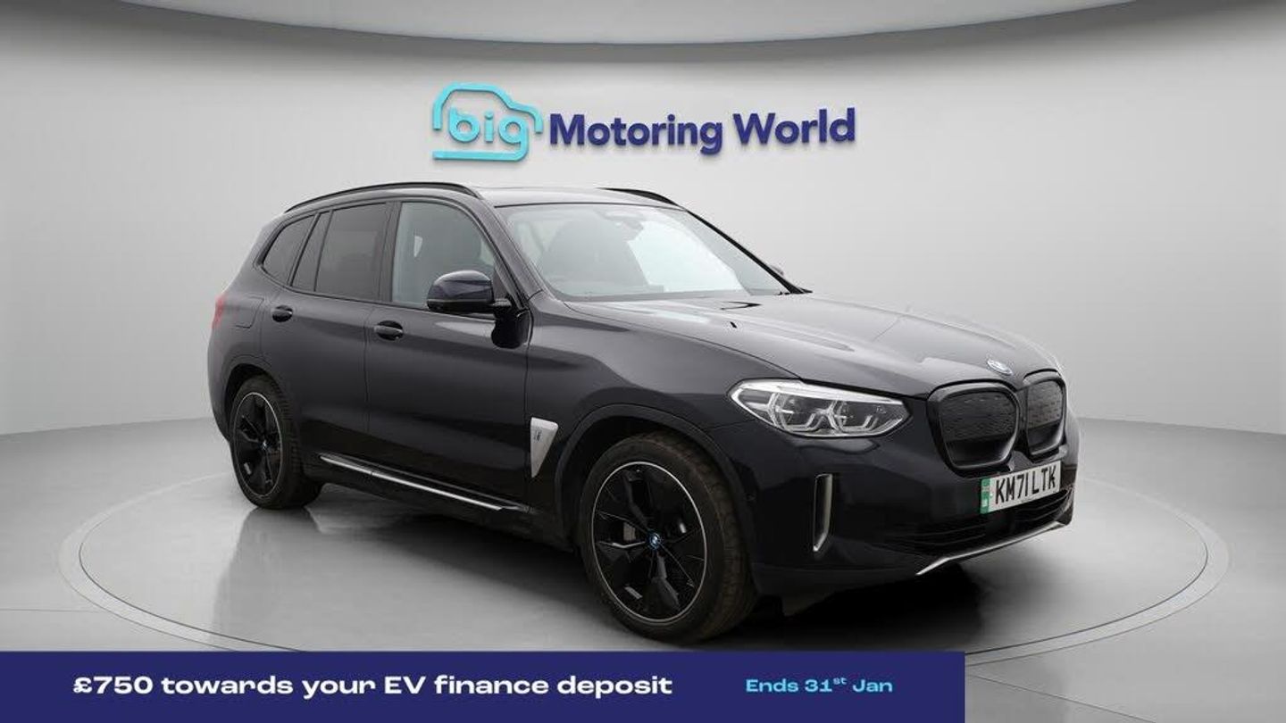 £750 towards your finance depo-Our BMW iX3 comes with optional extras worth £850. Specification includes a range of fantastic features including £750 towards your finance deposit, Panoramic Roof, Sun Protection Pack, Head up Display, 20'' Alloy Wheels, Leather Seats, Apple CarPlay, Adaptive Cruise Control, Electric Seats, Harman Kardon Speakers Specification information is supplied by CAPHPI and may vary to the actual car. This data does not form any part of a buying contact. Please check specification prior to purchase in-store. The MOT is valid until December 2026, visit bigmotoringworld.co.uk for more photos, a 360 tour, service history and a free HPI report.Were BIG on peace of mind and this Black BMW iX3 has completed our comprehensive 200 point inspection and passed all checks. Its ready for you to drive away with immediate collection in-store. We include a 90-day warranty as standard plus an option to extend for up to 3 years.Reserve this car exclusively for you, safely and securely at bigmotoringworld.co.uk, with a fully refundable £99 deposit. Test drive before you buy, with no commitment, no hassle and a completely haggle free experience. Still searching and want to see thousands more cars? We are BIG on choice with over 8000 cars to choose from.Visit our award winning web site bigmotoringworld.co.uk.Were Big Motoring World and were BIG on what matters to you.