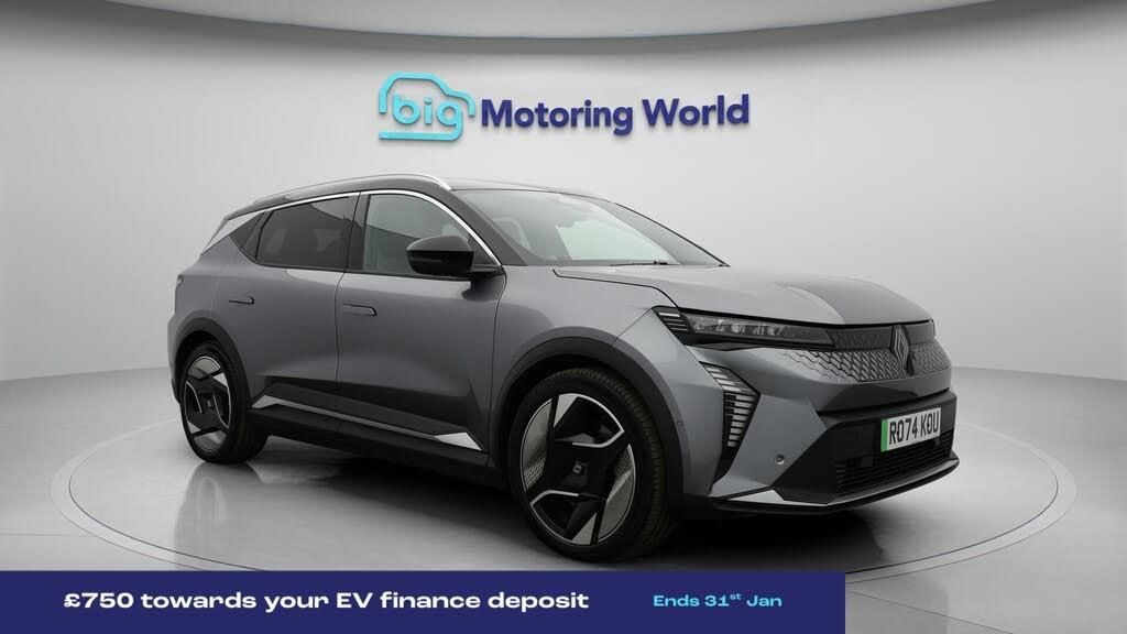 £750 towards your finance depo-Our Renault Scenic E-Tech is finished in Grey/Black. Specification includes a range of fantastic features including £750 towards your finance deposit, 20'' Alloy Wheels, Part Leather Seats, Apple CarPlay, Adaptive Cruise Control, Android Auto, Privacy Glass, Heated Seats, Rear View Camera, Heated Steering Wheel Specification information is supplied by CAPHPI and may vary to the actual car. This data does not form any part of a buying contact. Please check specification prior to purchase in-store. The MOT is valid until December 2027, visit bigmotoringworld.co.uk for more photos, a 360 tour, service history and a free HPI report.Were BIG on peace of mind and this Grey/Black Renault Scenic E-Tech has completed our comprehensive 200 point inspection and passed all checks. Its ready for you to drive away with immediate collection in-store. We include a 90-day warranty as standard plus an option to extend for up to 3 years.Reserve this car exclusively for you, safely and securely at bigmotoringworld.co.uk, with a fully refundable £99 deposit. Test drive before you buy, with no commitment, no hassle and a completely haggle free experience. Still searching and want to see thousands more cars? We are BIG on choice with over 8000 cars to choose from.Visit our award winning web site bigmotoringworld.co.uk.Were Big Motoring World and were BIG on what matters to you.