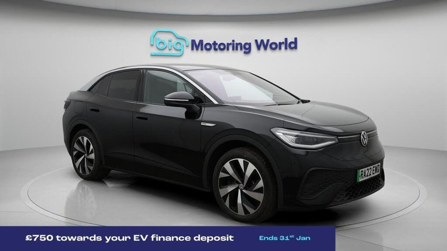 £750 towards your finance depo-Our Volkswagen ID.5 is finished in Black. Specification includes a range of fantastic features including £750 towards your finance deposit, Panoramic Roof, Part Leather Seats, Apple CarPlay, Adaptive Cruise Control, Android Auto, Satellite Navigation, Privacy Glass, Heated Seats, Heated Windscreen Specification information is supplied by CAPHPI and may vary to the actual car. This data does not form any part of a buying contact. Please check specification prior to purchase in-store. The MOT is valid until August 2026, visit bigmotoringworld.co.uk for more photos, a 360 tour, service history and a free HPI report.Were BIG on peace of mind and this Black Volkswagen ID.5 has completed our comprehensive 200 point inspection and passed all checks. Its ready for you to drive away with immediate collection in-store. We include a 90-day warranty as standard plus an option to extend for up to 3 years.Reserve this car exclusively for you, safely and securely at bigmotoringworld.co.uk, with a fully refundable £99 deposit. Test drive before you buy, with no commitment, no hassle and a completely haggle free experience. Still searching and want to see thousands more cars? We are BIG on choice with over 8000 cars to choose from.Visit our award winning web site bigmotoringworld.co.uk.Were Big Motoring World and were BIG on what matters to you.
