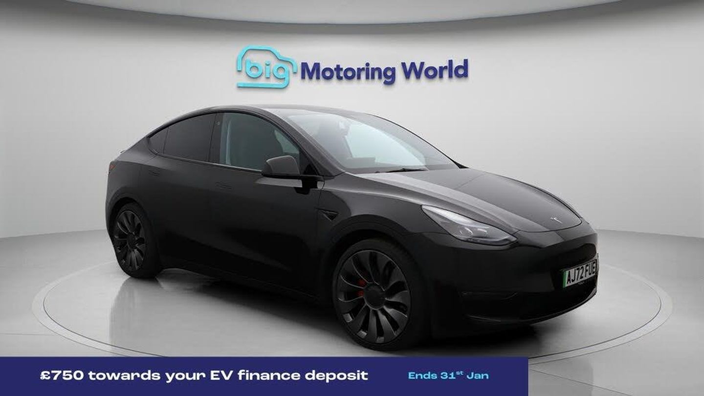 £750 towards your finance depo-Our Tesla Model Y is finished in Black. Specification includes a range of fantastic features including £750 towards your finance deposit, All Wheel Drive, Panoramic Roof, 21'' Alloy Wheels, Leather Seats, Satellite Navigation, Privacy Glass, Heated Seats, Wireless Phone Charging, Rear View Camera Specification information is supplied by CAPHPI and may vary to the actual car. This data does not form any part of a buying contact. Please check specification prior to purchase in-store. The MOT is valid until December 2026, visit bigmotoringworld.co.uk for more photos, a 360 tour, service history and a free HPI report.Were BIG on peace of mind and this Black Tesla Model Y has completed our comprehensive 200 point inspection and passed all checks. Its ready for you to drive away with immediate collection in-store. We include a 90-day warranty as standard plus an option to extend for up to 3 years.Reserve this car exclusively for you, safely and securely at bigmotoringworld.co.uk, with a fully refundable £99 deposit. Test drive before you buy, with no commitment, no hassle and a completely haggle free experience. Still searching and want to see thousands more cars? We are BIG on choice with over 8000 cars to choose from.Visit our award winning web site bigmotoringworld.co.uk.Were Big Motoring World and were BIG on what matters to you.
