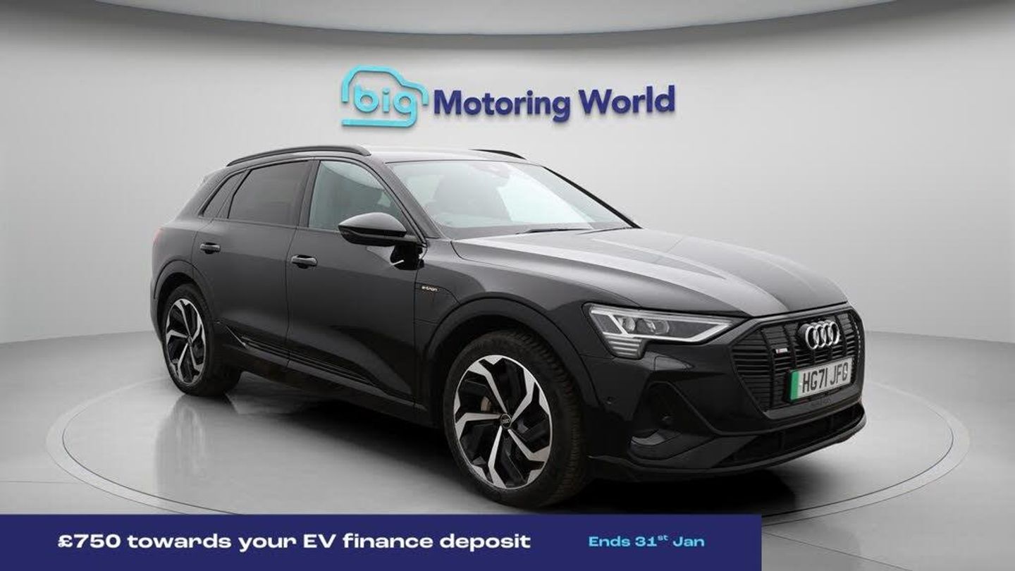 £750 towards your finance depo-Our Audi e-tron is finished in Black. Specification includes a range of fantastic features including £750 towards your finance deposit, All Wheel Drive, 21'' Alloy Wheels, Leather Seats, Air Suspension, Apple CarPlay, Electric Seats, Lane Assist, S Line Body Styling, Android Auto Specification information is supplied by CAPHPI and may vary to the actual car. This data does not form any part of a buying contact. Please check specification prior to purchase in-store. The MOT is valid until December 2026, visit bigmotoringworld.co.uk for more photos, a 360 tour, service history and a free HPI report.Were BIG on peace of mind and this Black Audi e-tron has completed our comprehensive 200 point inspection and passed all checks. Its ready for you to drive away with immediate collection in-store. We include a 90-day warranty as standard plus an option to extend for up to 3 years.Reserve this car exclusively for you, safely and securely at bigmotoringworld.co.uk, with a fully refundable £99 deposit. Test drive before you buy, with no commitment, no hassle and a completely haggle free experience. Still searching and want to see thousands more cars? We are BIG on choice with over 8000 cars to choose from.Visit our award winning web site bigmotoringworld.co.uk.Were Big Motoring World and were BIG on what matters to you.