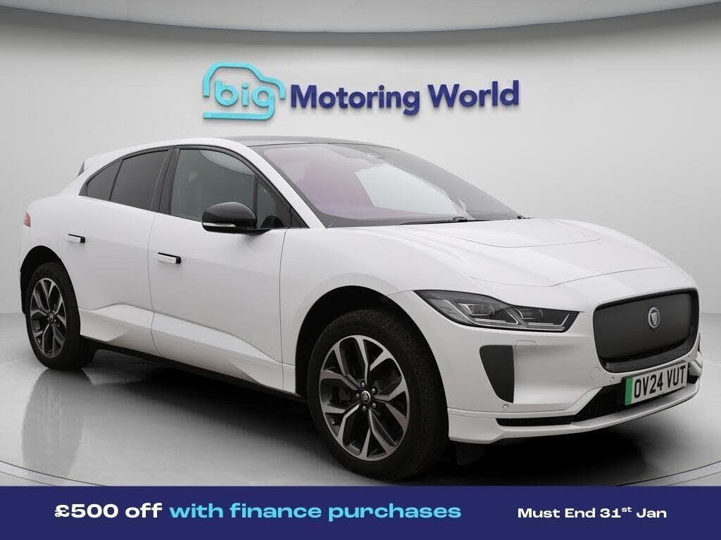 £500 towards your finance depo-Our Jaguar I-PACE is finished in White. Specification includes a range of fantastic features including £500 towards your finance deposit, Panoramic Roof, All Wheel Drive, Head up Display, Leather Seats, Apple CarPlay, Lane Assist, Android Auto, Satellite Navigation, Privacy Glass Specification information is supplied by CAPHPI and may vary to the actual car. This data does not form any part of a buying contact. Please check specification prior to purchase in-store. The MOT is valid until March 2027, visit bigmotoringworld.co.uk for more photos, a 360 tour, service history and a free HPI report.Were BIG on peace of mind and this White Jaguar I-PACE has completed our comprehensive 200 point inspection and passed all checks. Its ready for you to drive away with immediate collection in-store. We include a 90-day warranty as standard plus an option to extend for up to 3 years.Reserve this car exclusively for you, safely and securely at bigmotoringworld.co.uk, with a fully refundable £99 deposit. Test drive before you buy, with no commitment, no hassle and a completely haggle free experience. Still searching and want to see thousands more cars? We are BIG on choice with over 8000 cars to choose from.Visit our award winning web site bigmotoringworld.co.uk.Were Big Motoring World and were BIG on what matters to you.